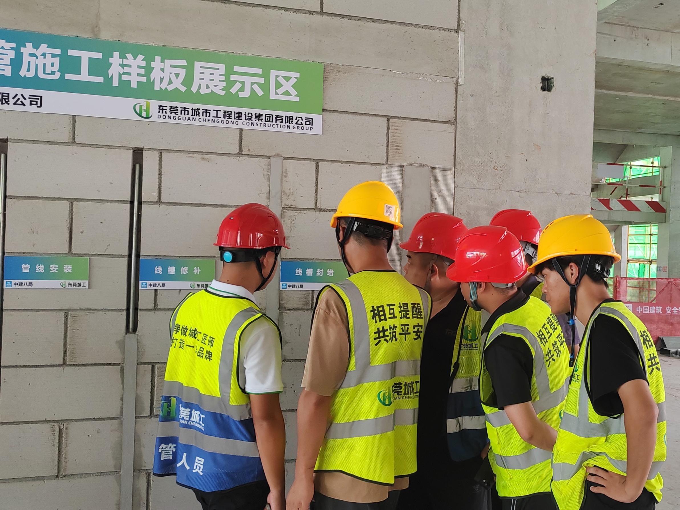 这种“流水线”式管理不仅体现在时间维度上,更贯穿于质量管理。为了让施工标准具象化、可参考,项目团队集中打造实体样板区,系统展示关键工序,明确工艺、材料选用及质量验收标准,发挥技术交底、操作培训、质量对比的“实物教科书”作用。