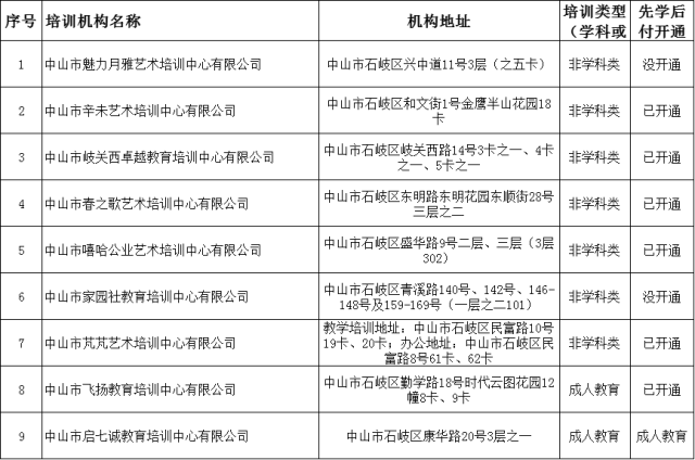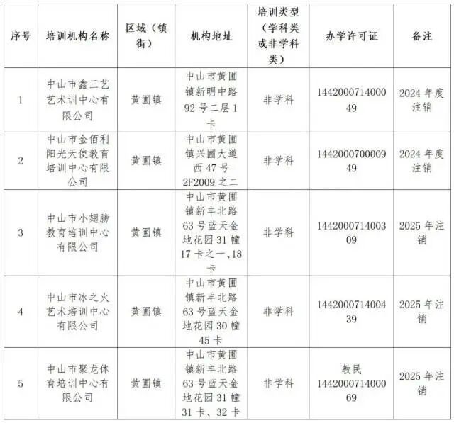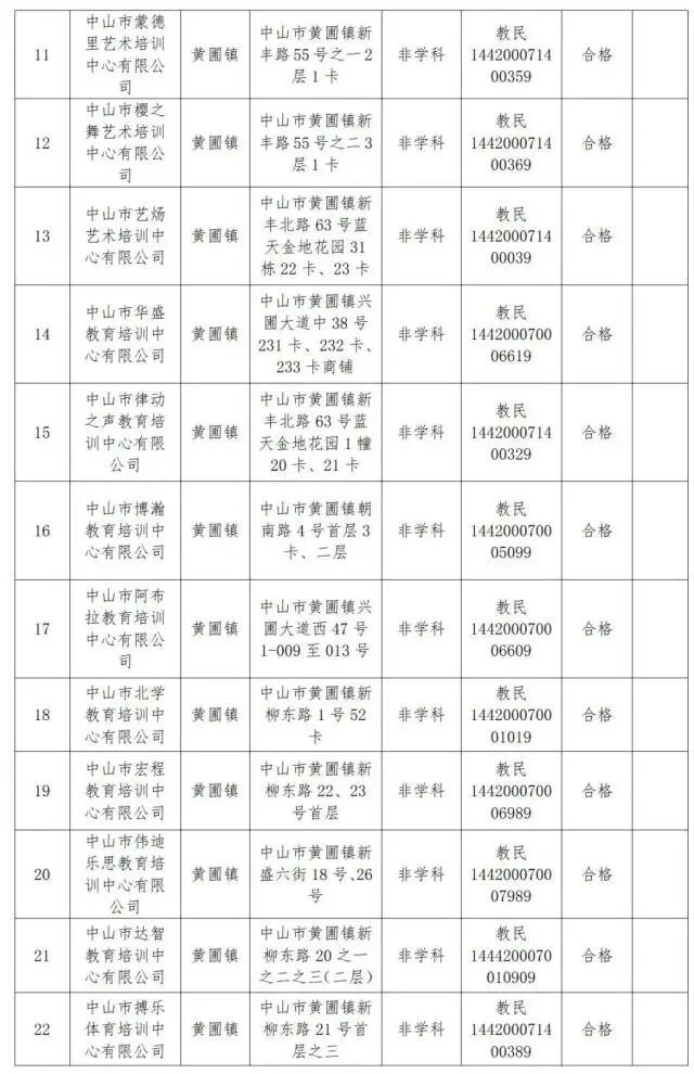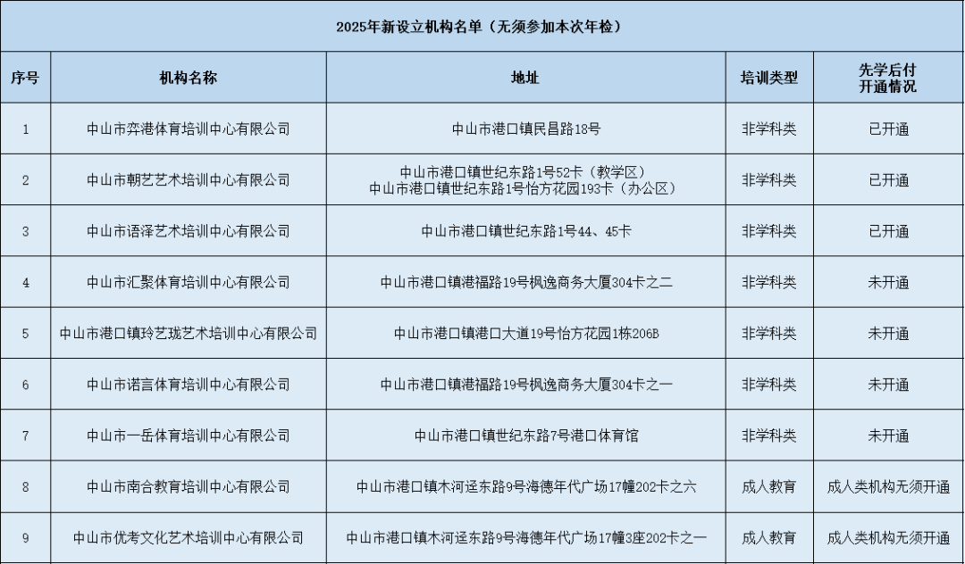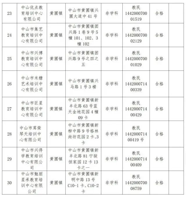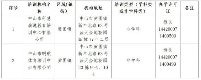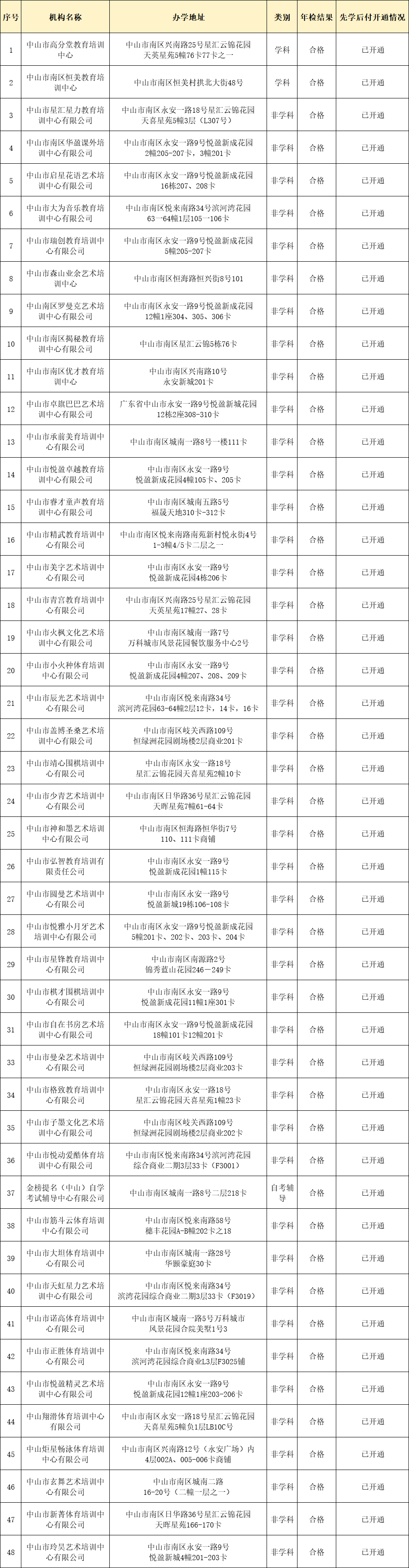9月24日—25日,中山石岐街道、南区街道、港口镇、黄圃镇先后发布2024年度该镇街校外培训机构年检结果。