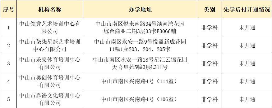 石岐街道依法对辖区124家校外培训机构开展规范办学年度检查,实现检查全覆盖。本次检查结果合格为108家,基本合格为2家,不合格为4家,现场停业10家。截至目前,石岐街道已开通“先学后付”支付模式的校外培训机构一共99家。请学生家长理性选择合规校外培训机构,优先选择“先学后付”方式支付培训费用。