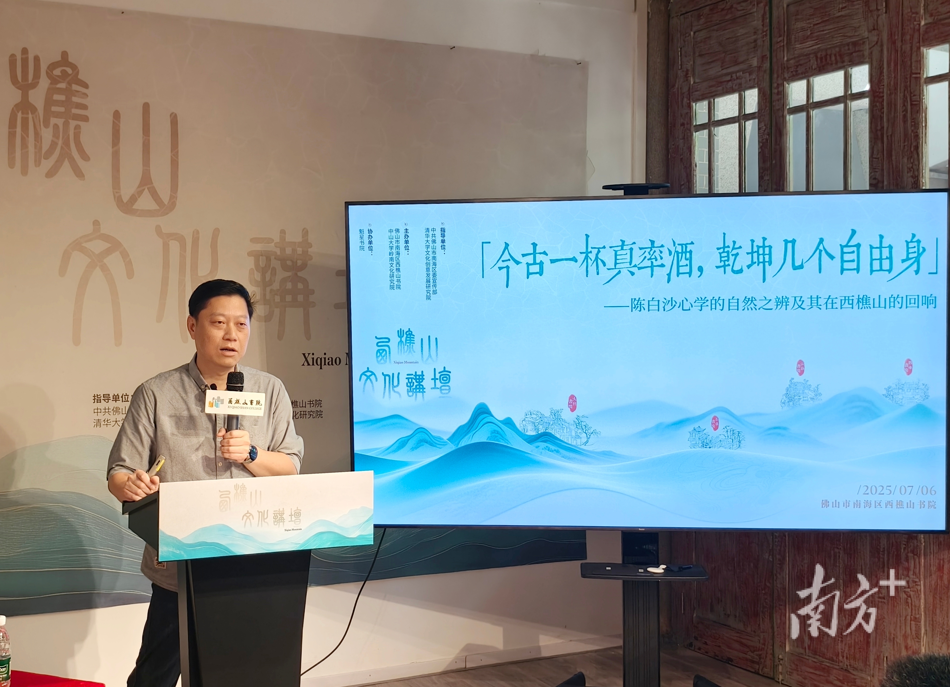 “今古一杯真率酒,乾坤几个自由身”。7月6日,西樵山文化讲坛(第三讲)活动在西樵山书院举办,中山大学哲学系教授、博士生导师,西樵山文化促进委员会委员陈畅以“陈白沙心学的自然之辨及其在西樵山的回响”为主题开讲。南海区、西樵镇党政干部齐聚聆听西樵山理学发展简史,陈白沙心学的自然之辨及其在西樵山的回响,为赓续“最岭南”的城市文脉,擦亮西樵山文化品牌进一步聚强力量。