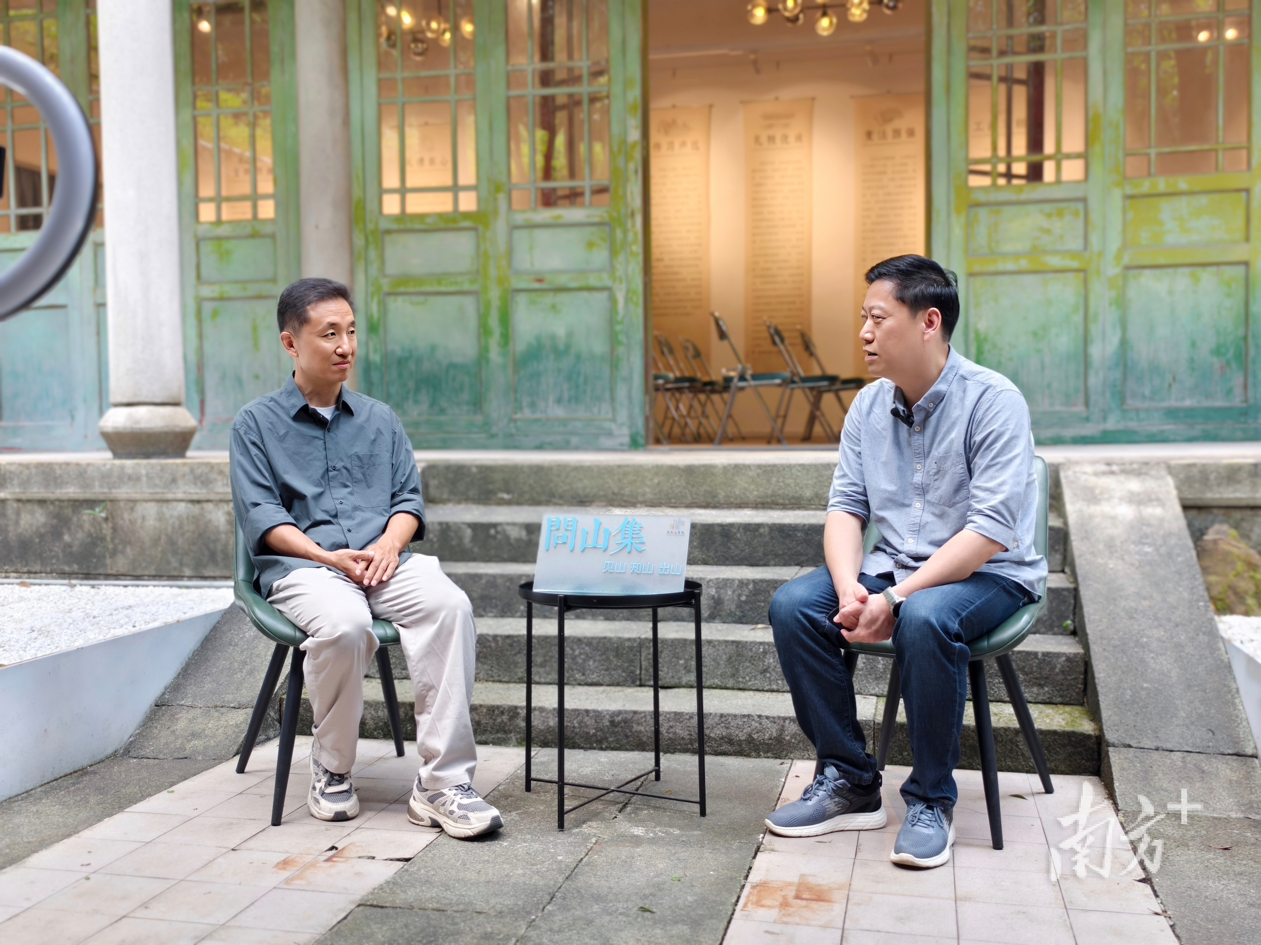 “问山集”是西樵山文化促进委员会联合西樵山书院全新打造的深度对谈栏目,旨在助力把西樵山打造成为持续产生思想火花、艺术创新和人文对话的当代精神高地。在讲坛后,现场还开展了一场“问山集”访谈。清华文创院院长、清华大学新闻与传播学院教授、西樵山文化促进委员会主任胡钰与陈畅进行自由访谈,围绕理学名山的发展和传播进行对话。