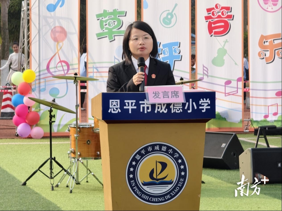 1月29日,恩平市人民法院法官岑淑君一行来到恩平市成德小学,校园操场上人头攒动,讲台两侧整齐摆放着各类乐器,悠扬的旋律在校园里萦绕,2025年秋季散学典礼暨草坪音乐节活动在此举行。