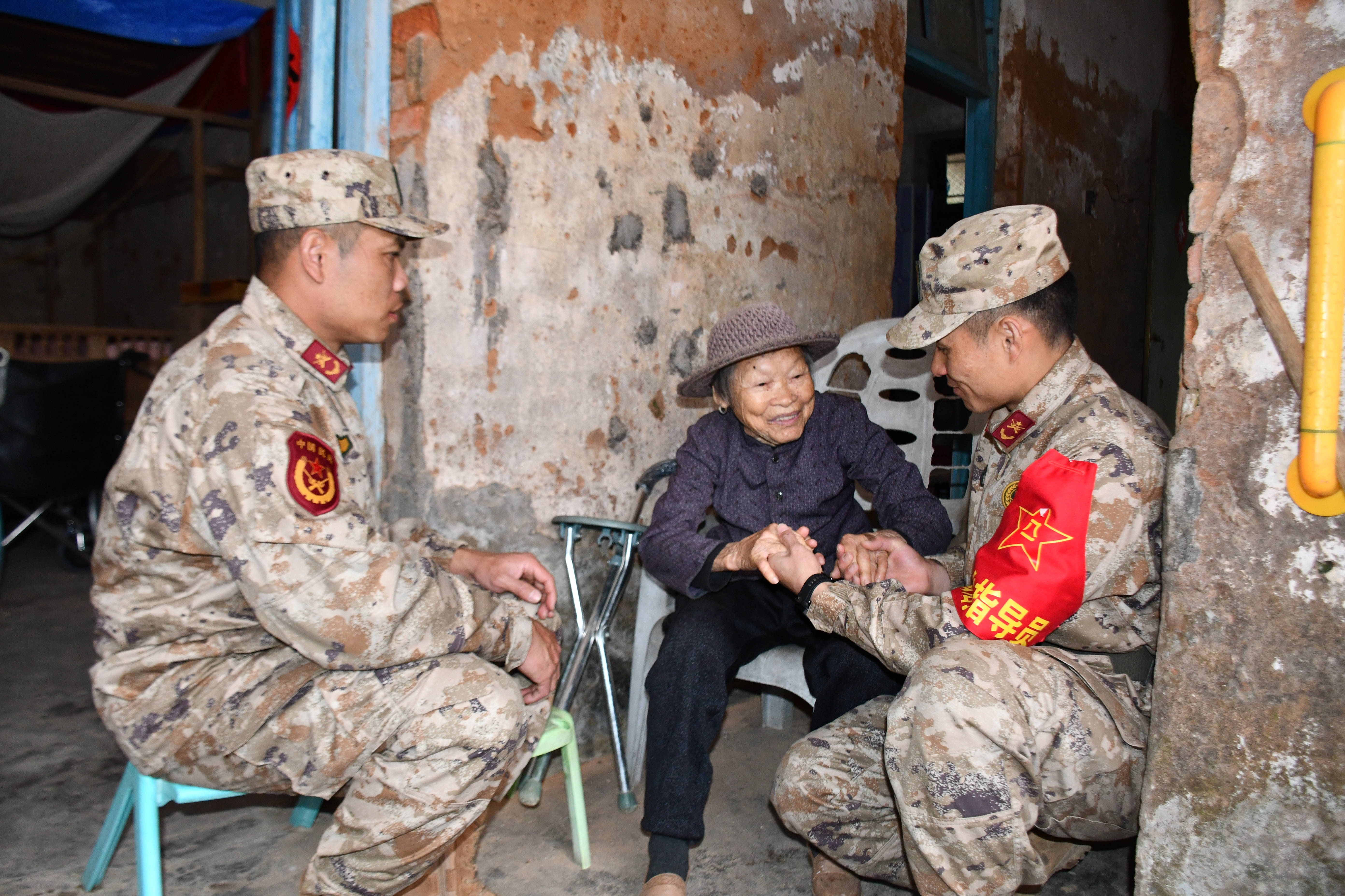 执行任务的指挥员带领民兵骨干拿着米、油、棉被等慰问物资,走进特殊群体家中。为孤寡老人铺上新棉被、修补窗户,倾听退伍老兵援助唐山大地震灾后重建的军旅故事……贴心举动让村民倍感温暖。“你们不仅来帮忙清山塘,还惦记着我们这些老人,真的太感谢你们了。”年过八旬的孤寡老人吴奶奶眼眶湿润,紧紧拉着民兵的手久久不愿松开。