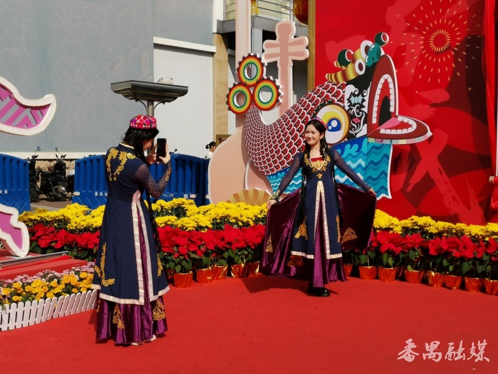 新疆班的学生在花市拍照留念