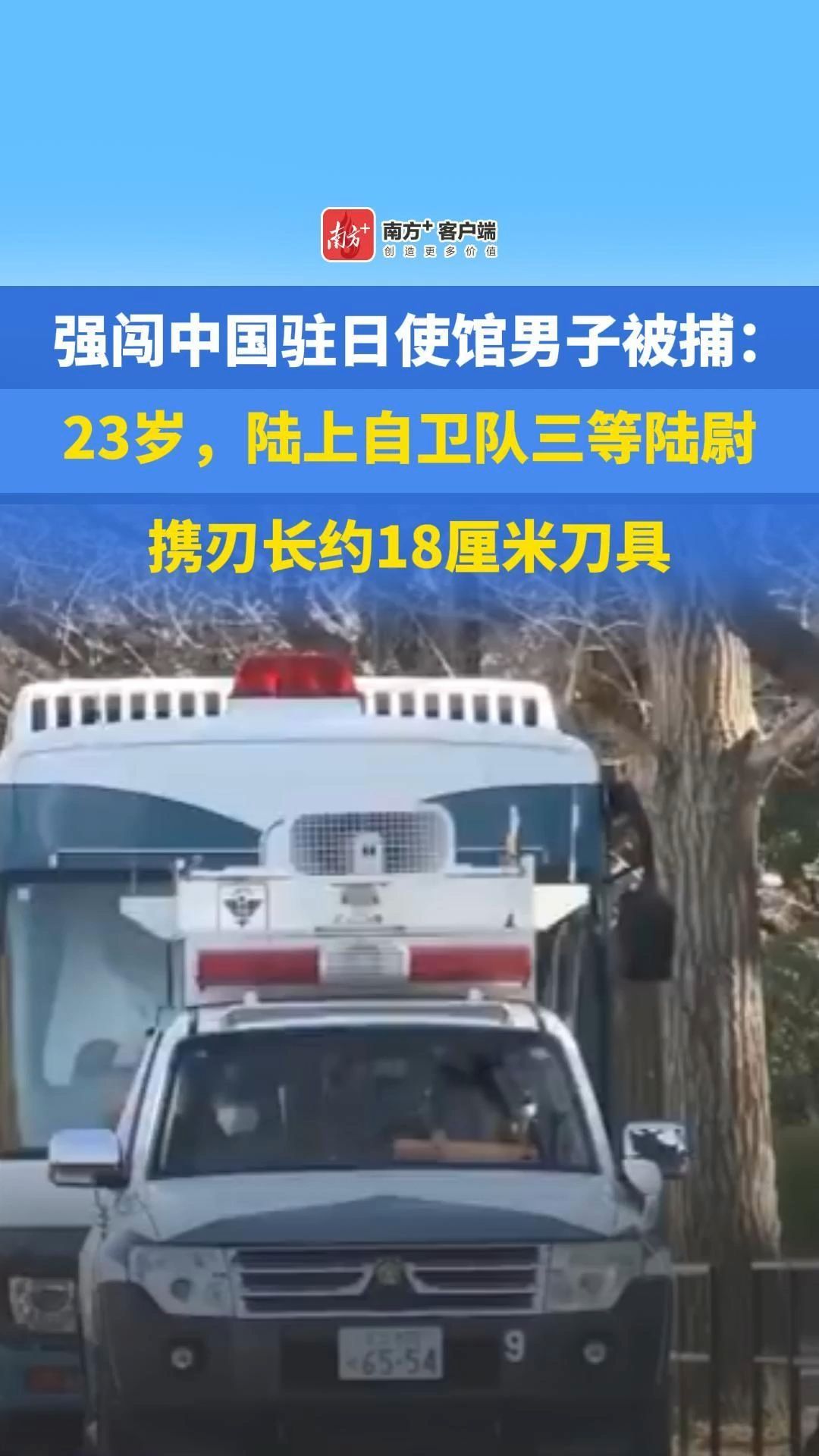 强闯中国驻日使馆男子被捕:23岁,陆上自卫队三等陆尉,携刃长约18厘米刀具