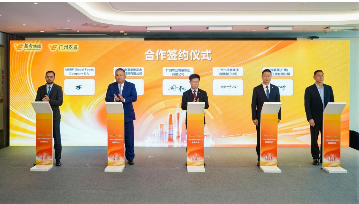 仪式现场同步举行了合作签约仪式,广州农发与粮食集团、江南果菜、益海嘉里、巴西MBRF、广州地铁、广州城投服务、南航物流、佳馨健康等多家行业龙头及重点单位达成合作,将在食材供应、冷链物流、国际贸易、民生服务等领域深化协同,共建高效协同的食品产业生态圈。