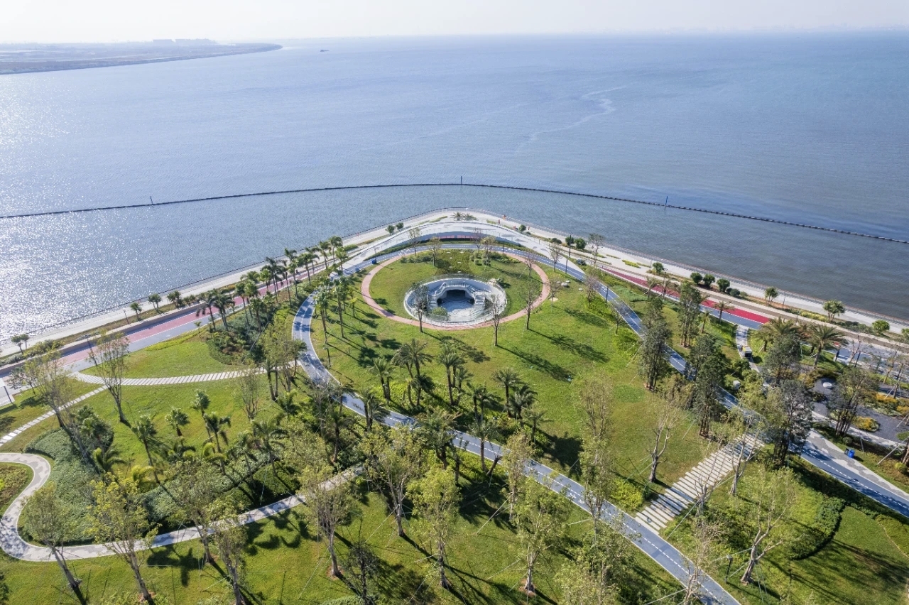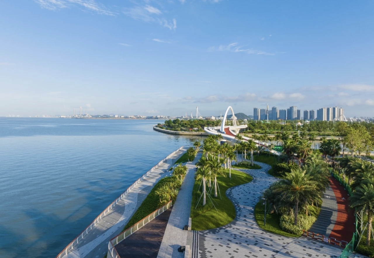 东莞黄金海岸是此次采风的核心目的地。这条规划总长约42公里的海岸线,目前已完成并对外开放7.5公里示范段。这里不仅是市民观海的绝佳“打卡地”,更是展示滨海湾生态建设成效的重要窗口。