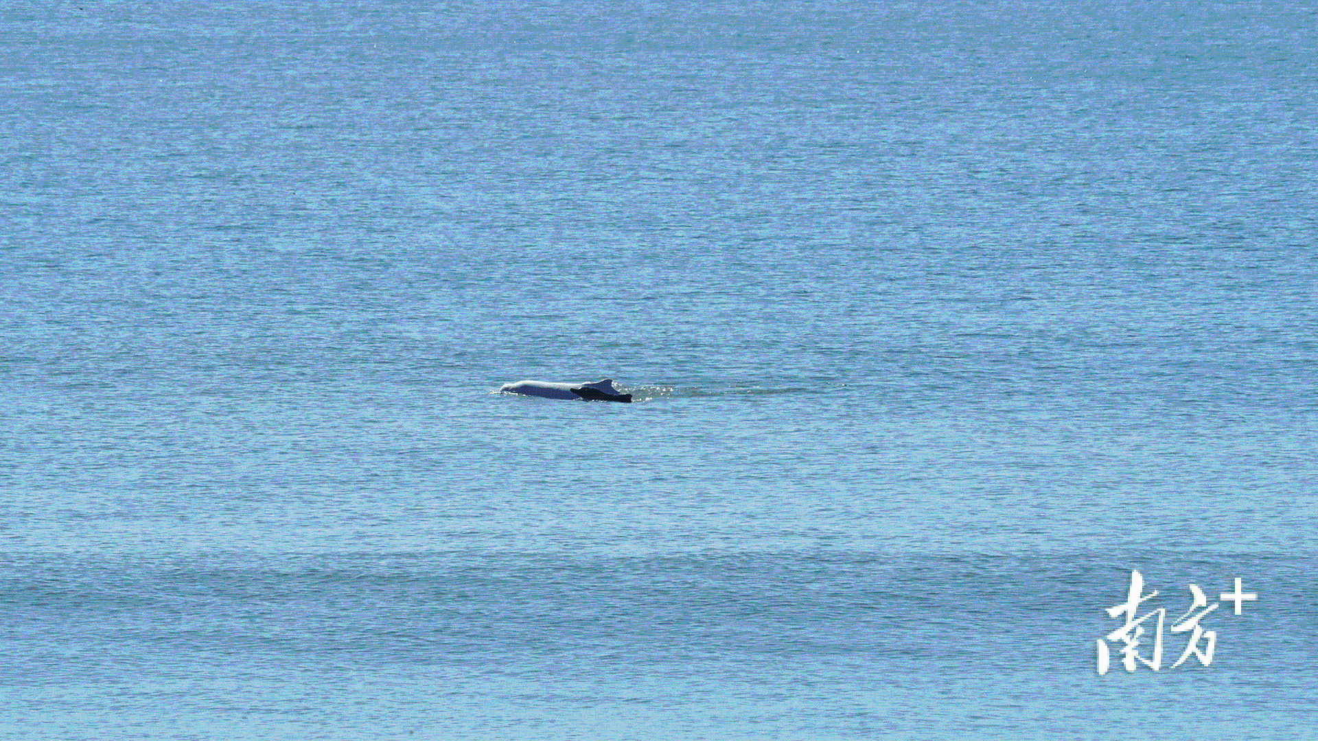 “快看!那有中华白海豚!”7月26日上午11点左右,小南在湛江东海岛龙海天沙滩离岸约百米处的海面上,邂逅了两只优雅游弋的中华白海豚。