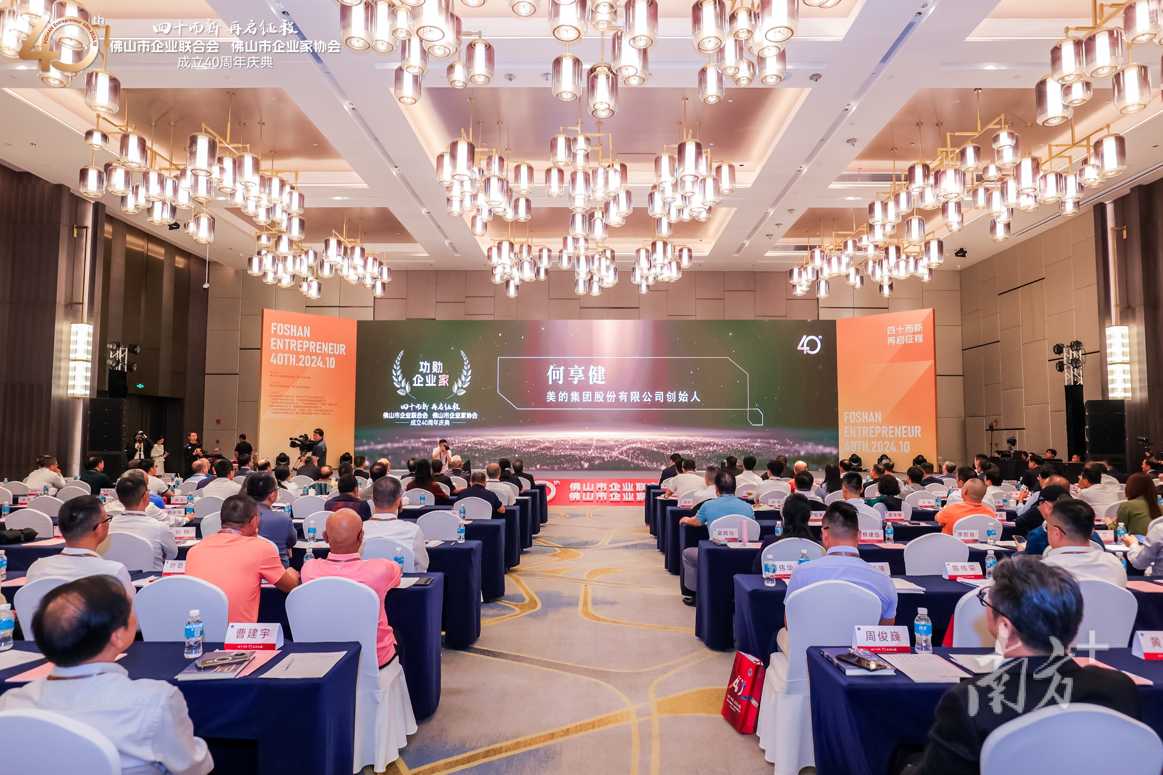 10月26日,佛山市企业联合会、佛山市企业家协会(下称“佛山企业两会”)成立40周年庆典举行,特别策划了“40年40人”活动,向何享健、黄联禧、梁庆德、李长东等10位功勋企业家及方洪波、戴促辉、陈亚海等32位卓越贡献企业家致敬。