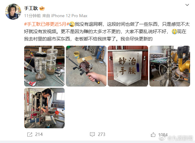 10月21日,网红手工耿自5月21日更新后,至今已153天未更新,引发网友关注。同日,手工耿发文回应称:“我没有退网啊,这段时间也做了一些东西,只是感觉不太好就没有发视频。更不是因为赚的太多才不更的,大家不要乱说好不好,现在我去村里的超市买东西,老板都不给我抹零了。我会尽快更新的。”
