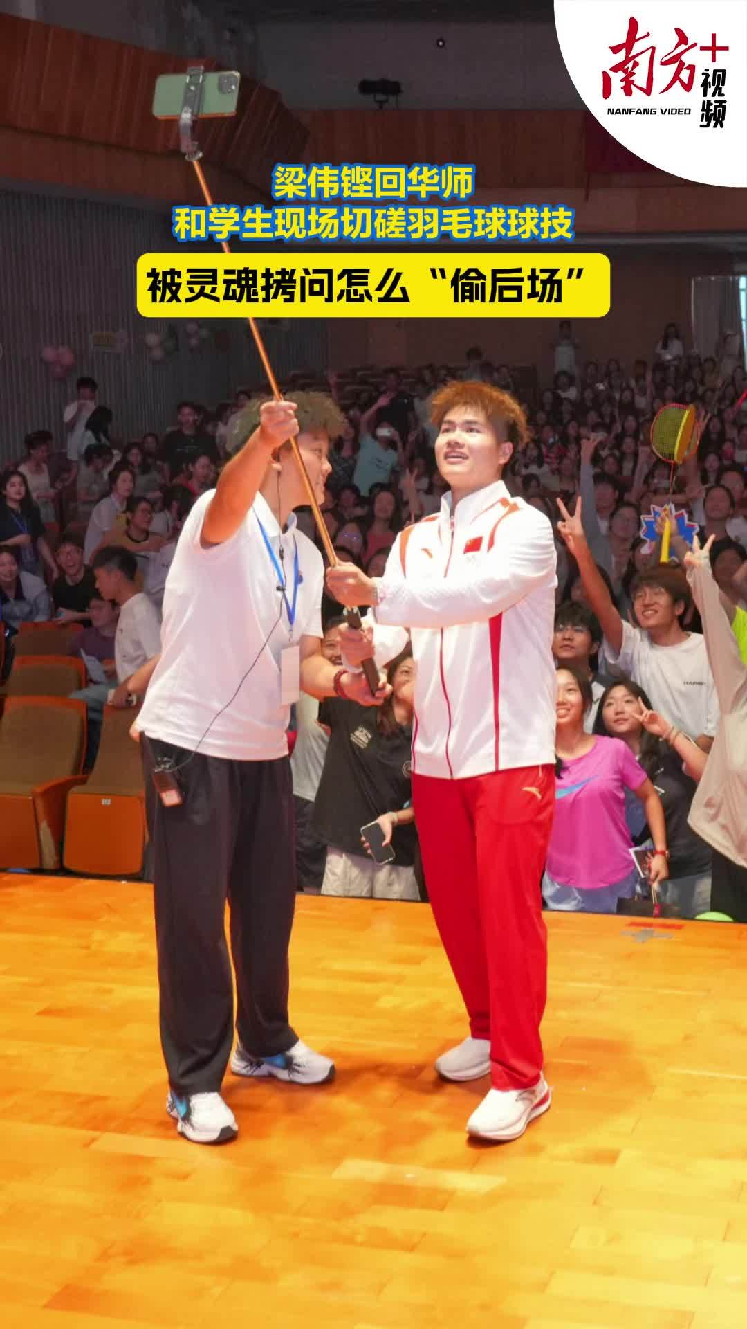 梁伟铿回华师和学生切磋羽毛球球技,被灵魂拷问怎么“偷后场”