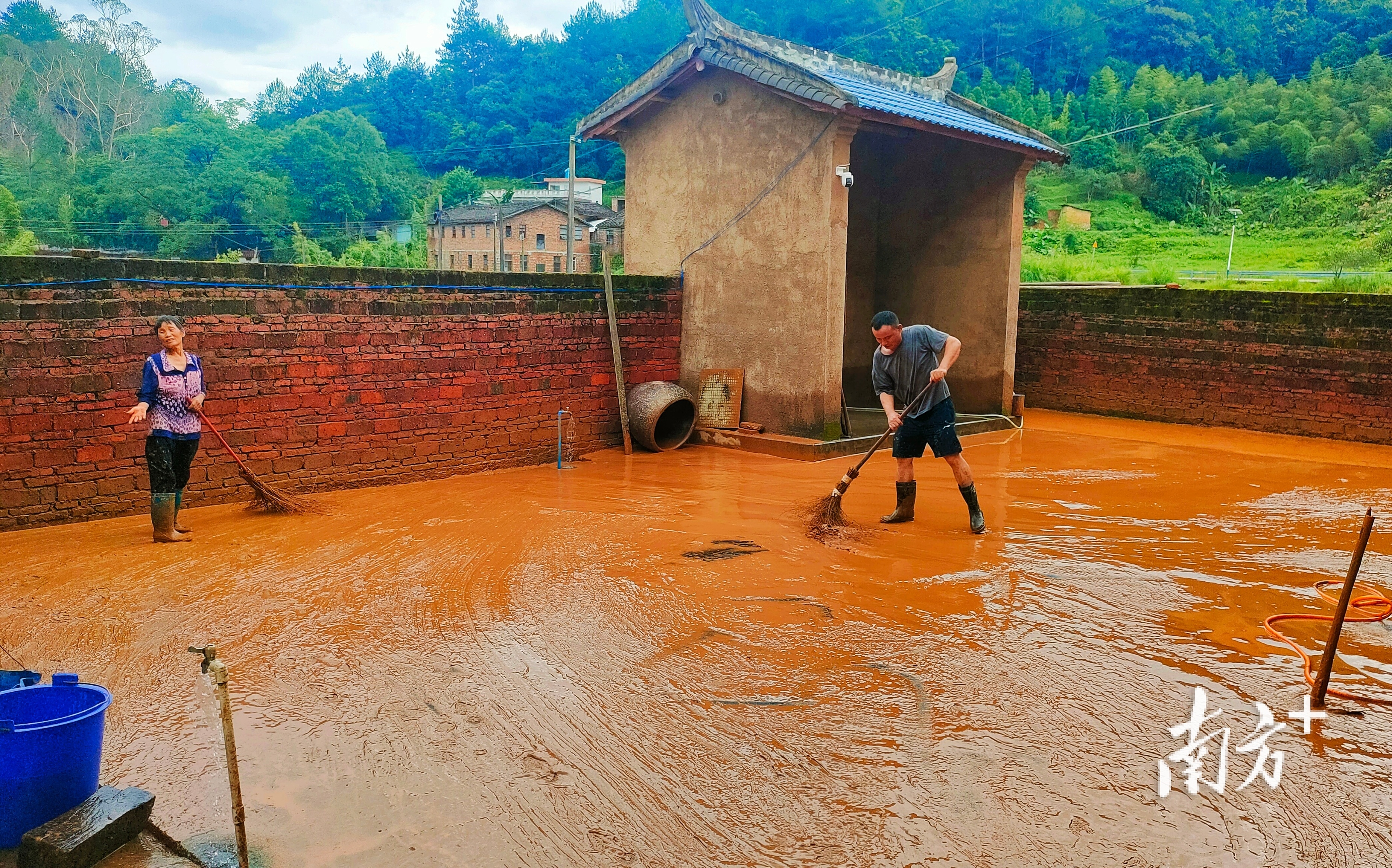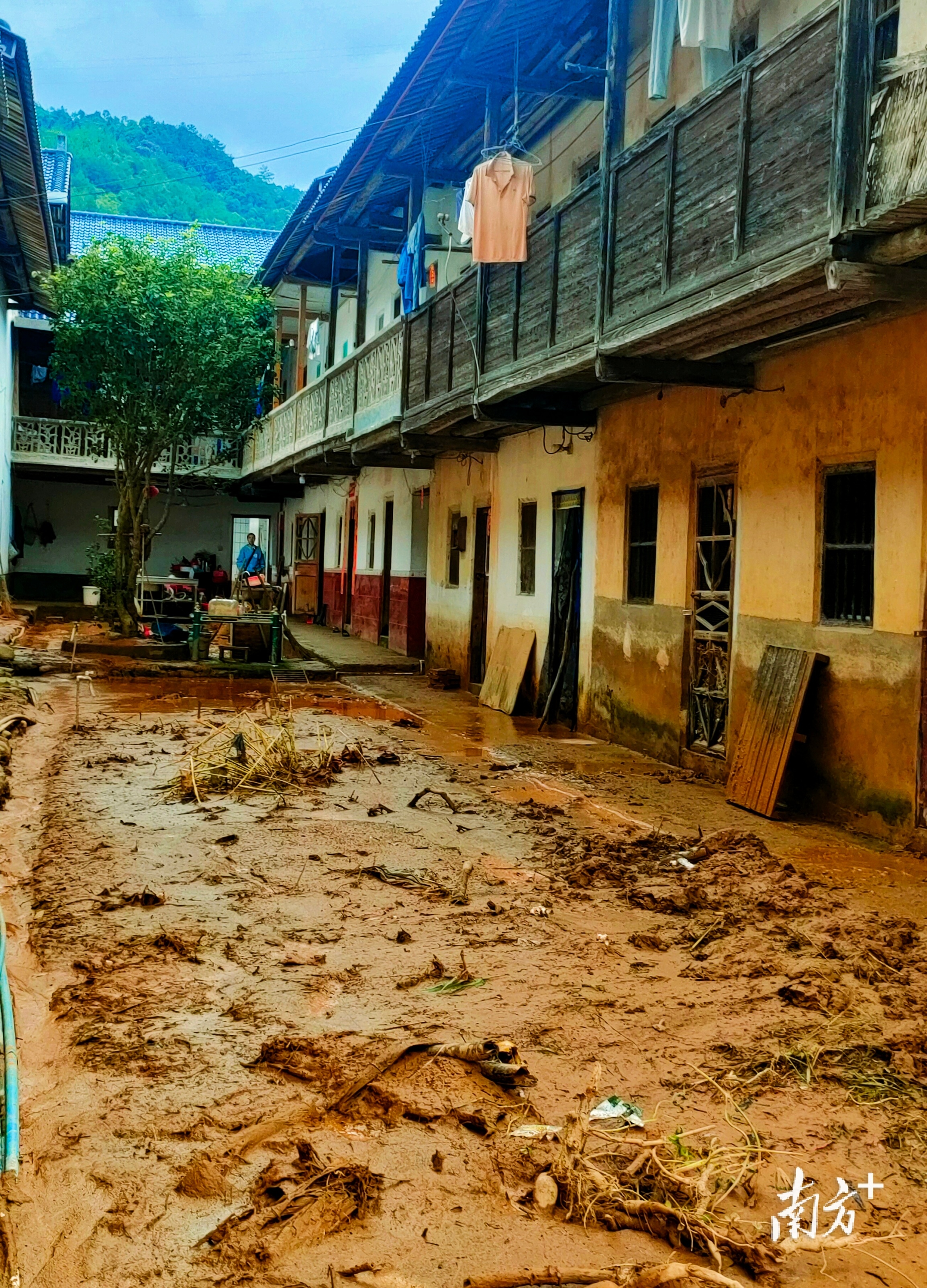何添英今年64岁,她正在打扫庭院,远在东莞打工的儿子已赶回来帮忙清淤,灶台清洗干净,已能正常使用。“我从外村嫁过来,第一次遇到这么大水。”何阿姨说,水上来时,她赶紧跑到山势较高的邻居家暂住。