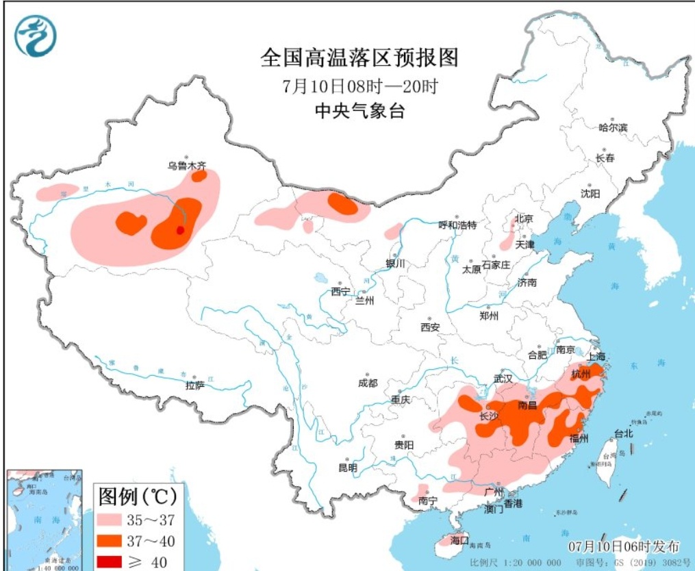 而放眼全国,目前高温主要集中在南部、东南部和西北部。中央气象台继续发布高温黄色预警,预计7月10日白天,湖南、江西、浙江、福建、广东中北部等地有高温天气,部分地方局地可达40℃以上。