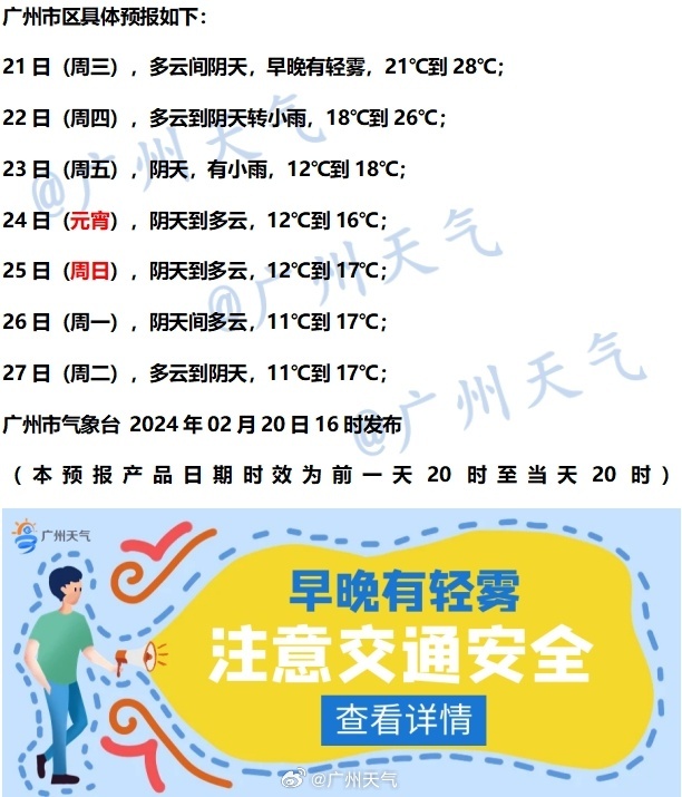 就拿广州来说,21日最高温或达28℃,而到24日元宵节,最高温已降至16℃,最低温为12℃。所以周六的元宵节大概是阴冷天气,朋友们注意保暖。