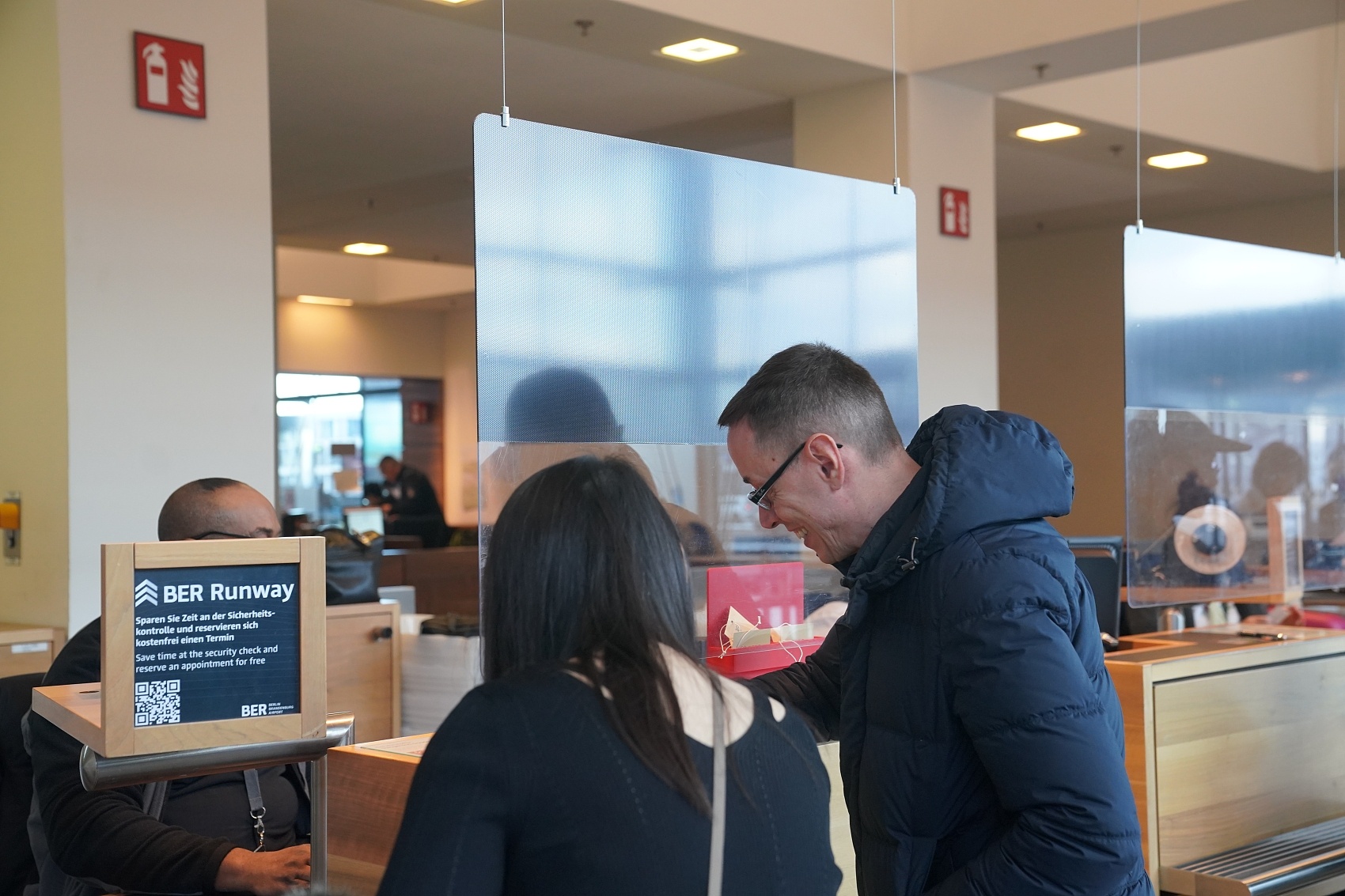 2023年12月1日,德国柏林勃兰登堡机场,飞往中国的外国旅客及同行者在柜台值机。来源:视觉中国