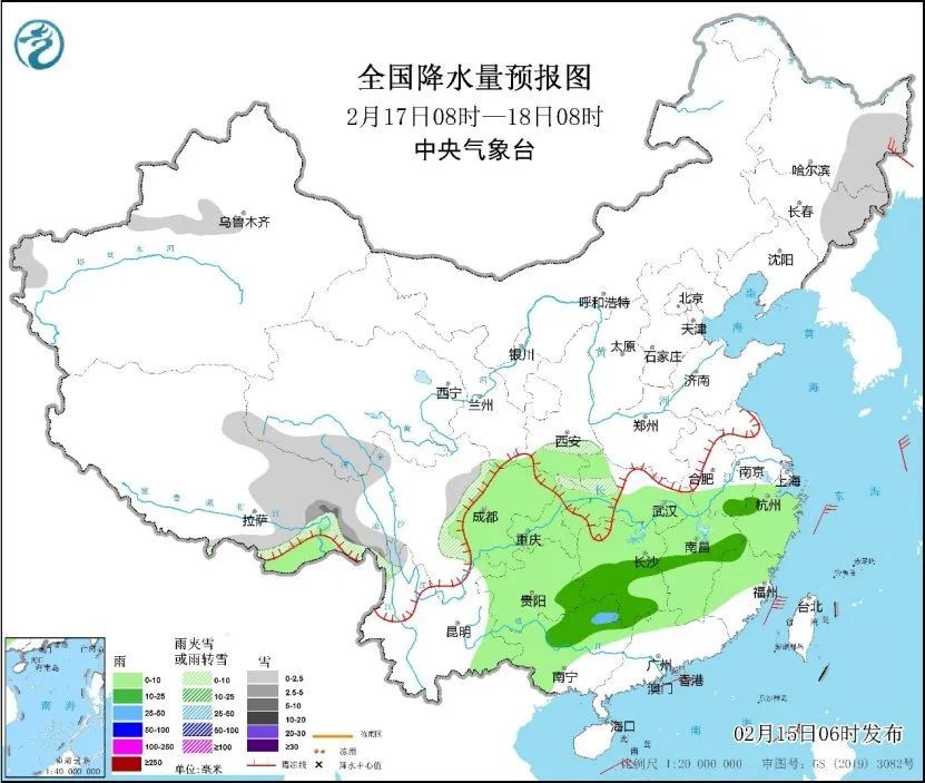 16日夜间至17日,西南地区东部、江南、华南西部和北部等地有小到中雨,贵州东部、湖南西部、广西东北部局地有大雨和弱雷电天气。