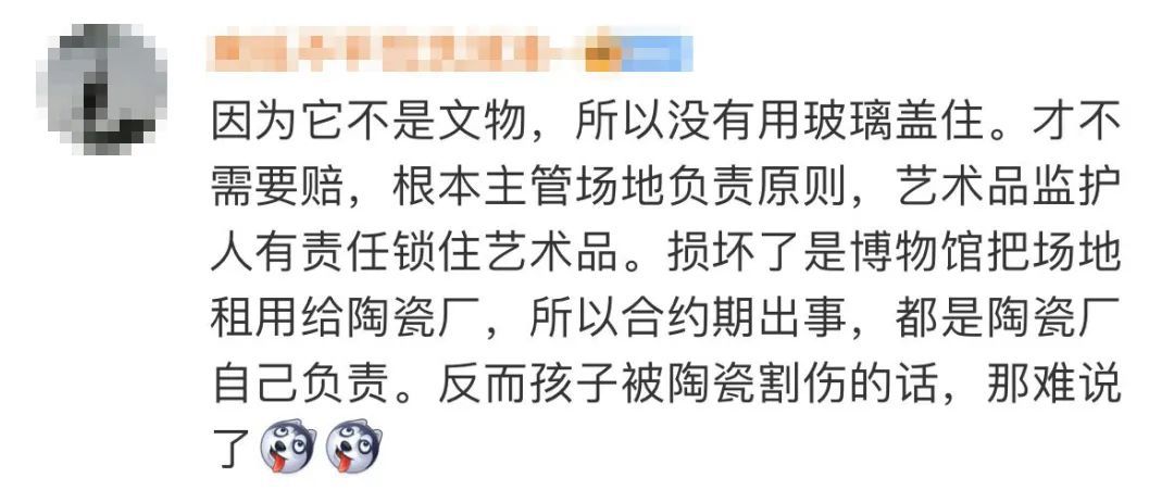 不少网友说易碎展品没有用玻璃罩子,出事了免赔也合理。