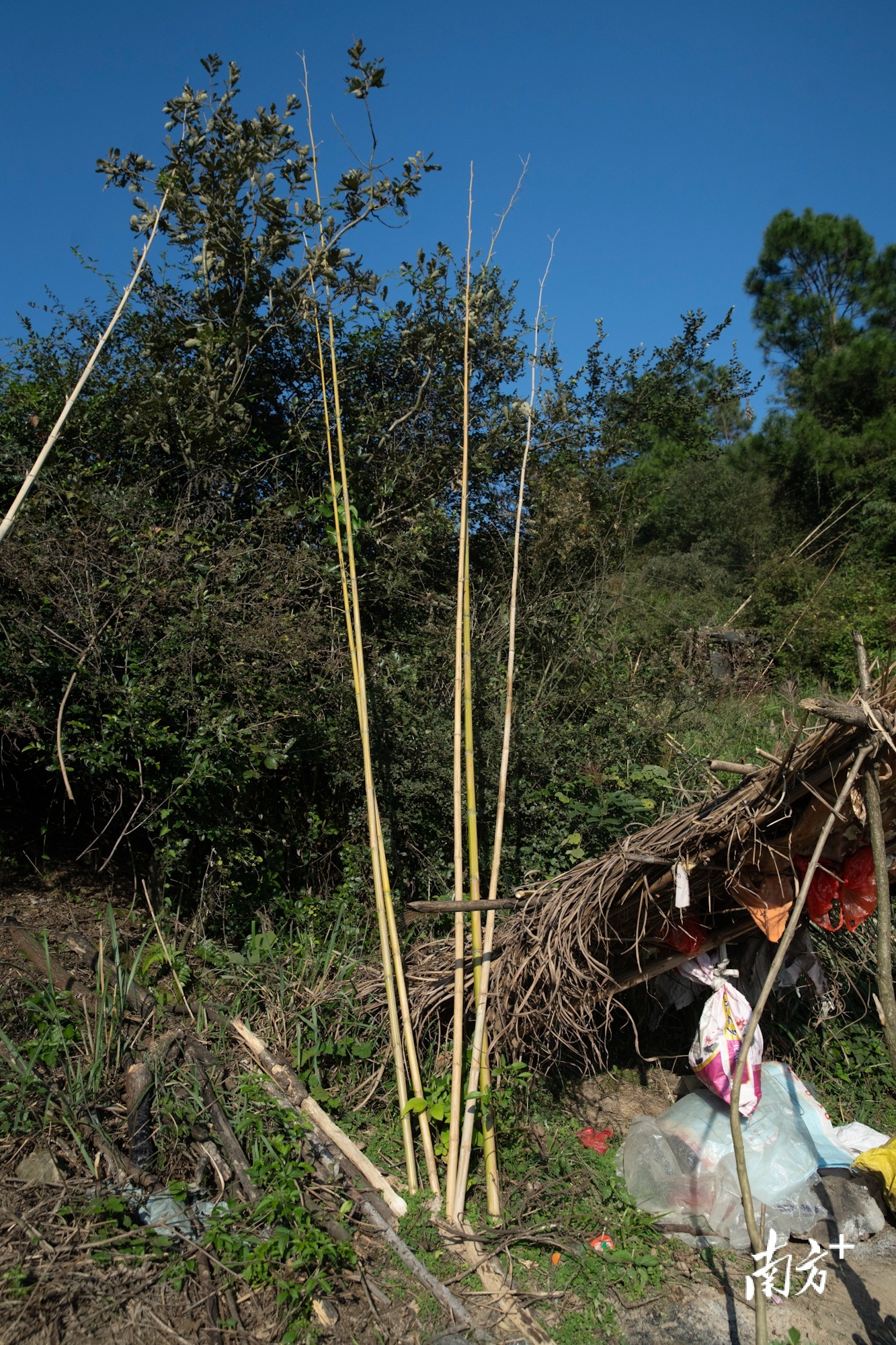 每个窝棚一旁通常会有多根五六米长的竹竿。一名护鸟志愿者告诉记者,这些竹竿正是平日里捕鸟人用来捕鸟的“打鸟棍”。
