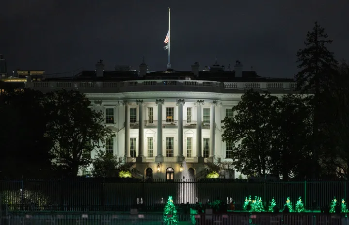 2024年12月29日,在美国首都华盛顿,白宫降半旗向前总统吉米·卡特的逝世致哀。图源:新华社
