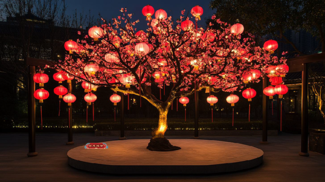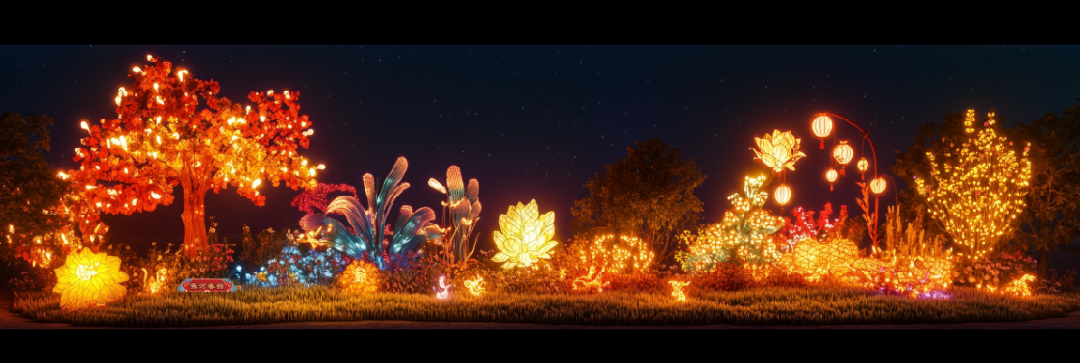 星愿绮梦灯组用象征着团圆与和谐的灯笼与点点星光串联起新春的美好愿望,点亮一树“灯花”,每一束光芒都映射着人们对未来的期盼与梦想。