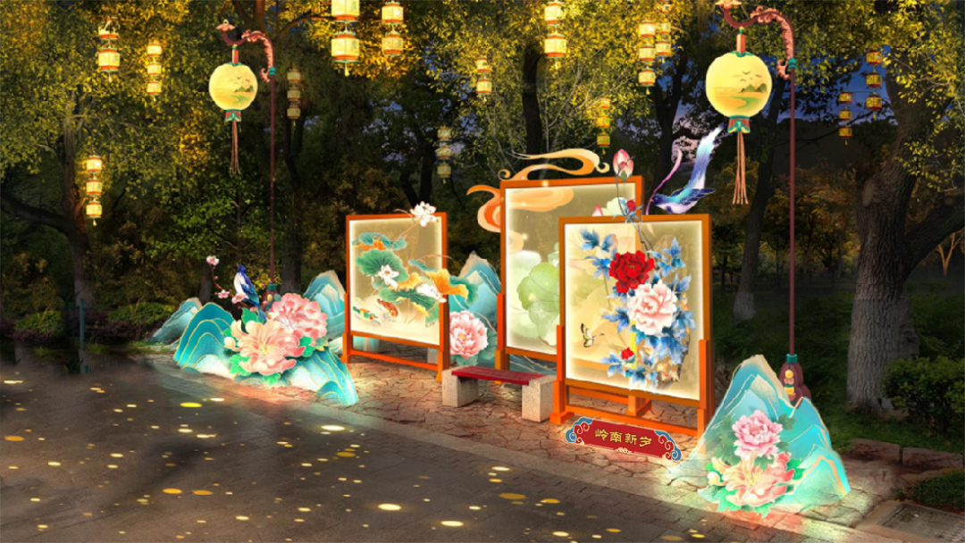 岭南新岁灯组则融合传统窗花与岭南文化特色,以温暖的灯光勾勒出一幅跨越时空的新春画卷。