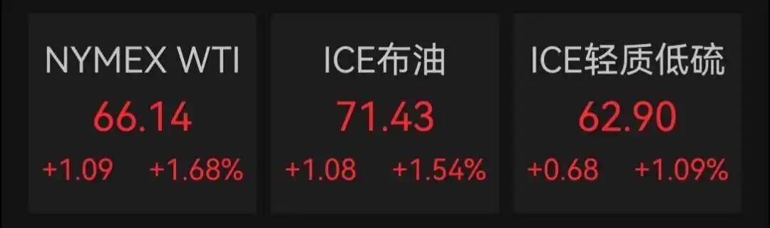 大宗商品方面,截至发稿,现货黄金涨0.17%,现货白银涨0.77%。WTI原油期货涨1.68%,报66.14美元/桶;布伦特原油期货涨1.54%,报71.43美元/桶。