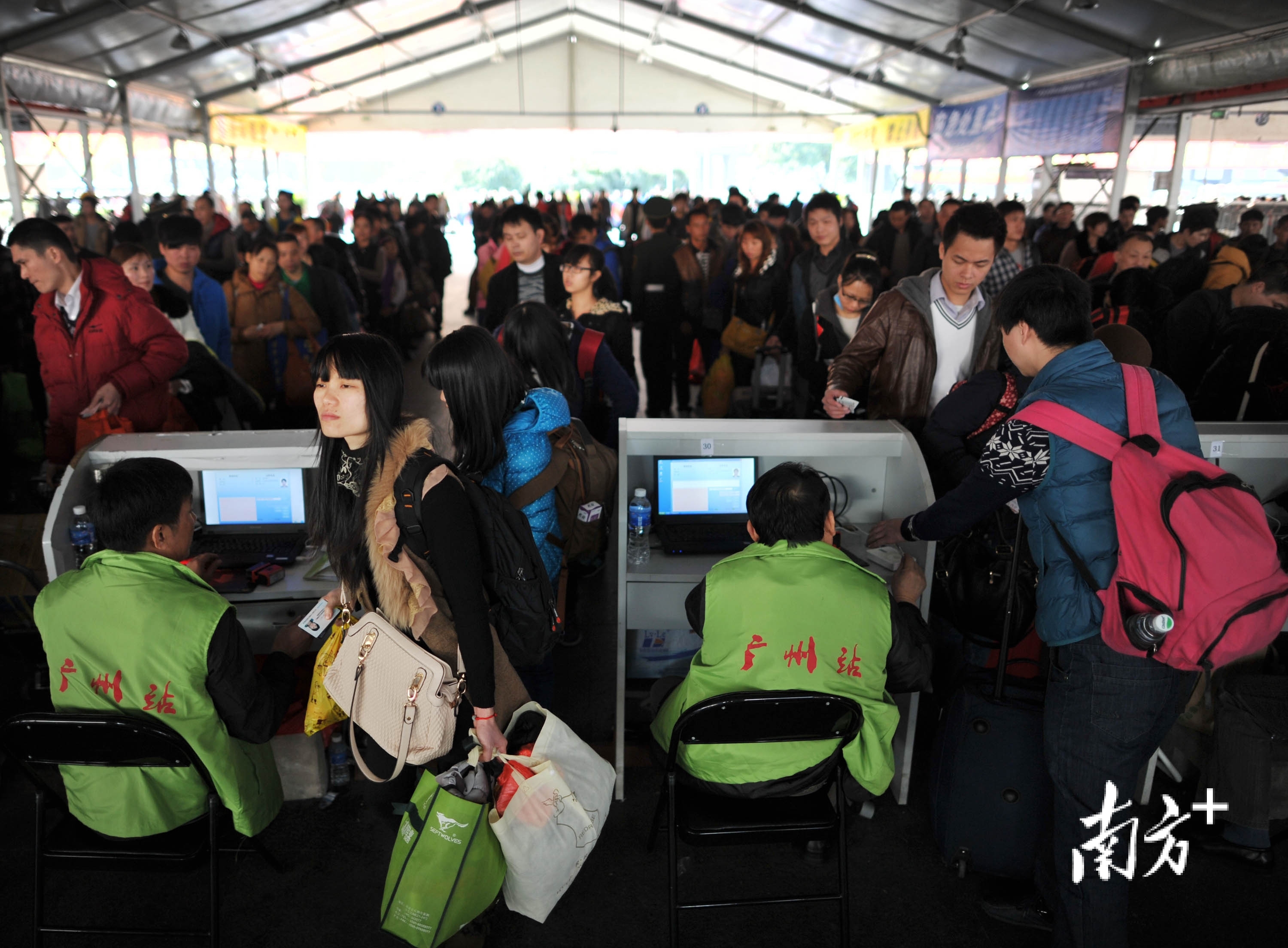 2016年春运,广州火车站,旅客排队进站。郭智军 摄