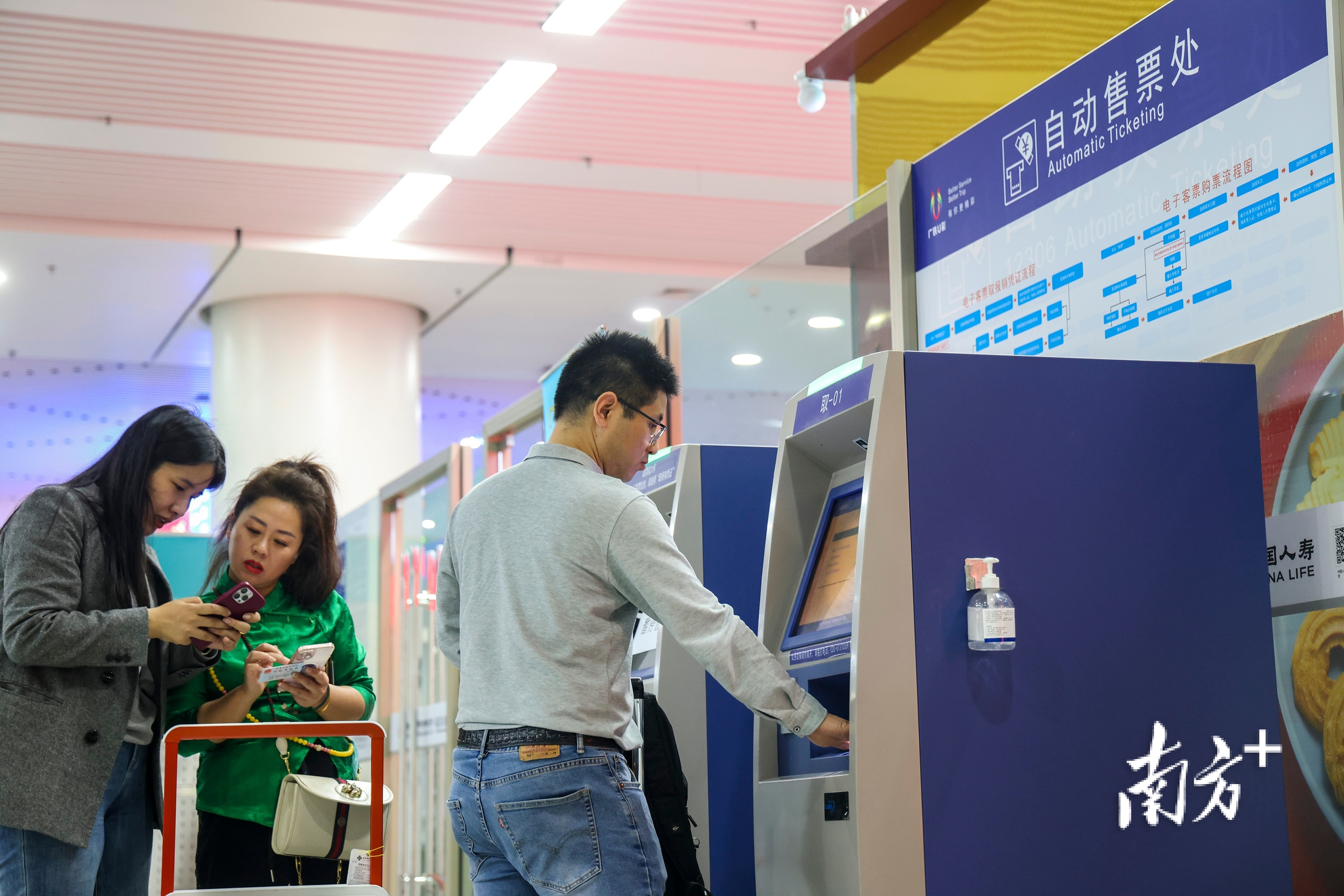 2024年春运,深圳福田站,旅客在自动售票处购买车票。南方日报记者 朱洪波 摄