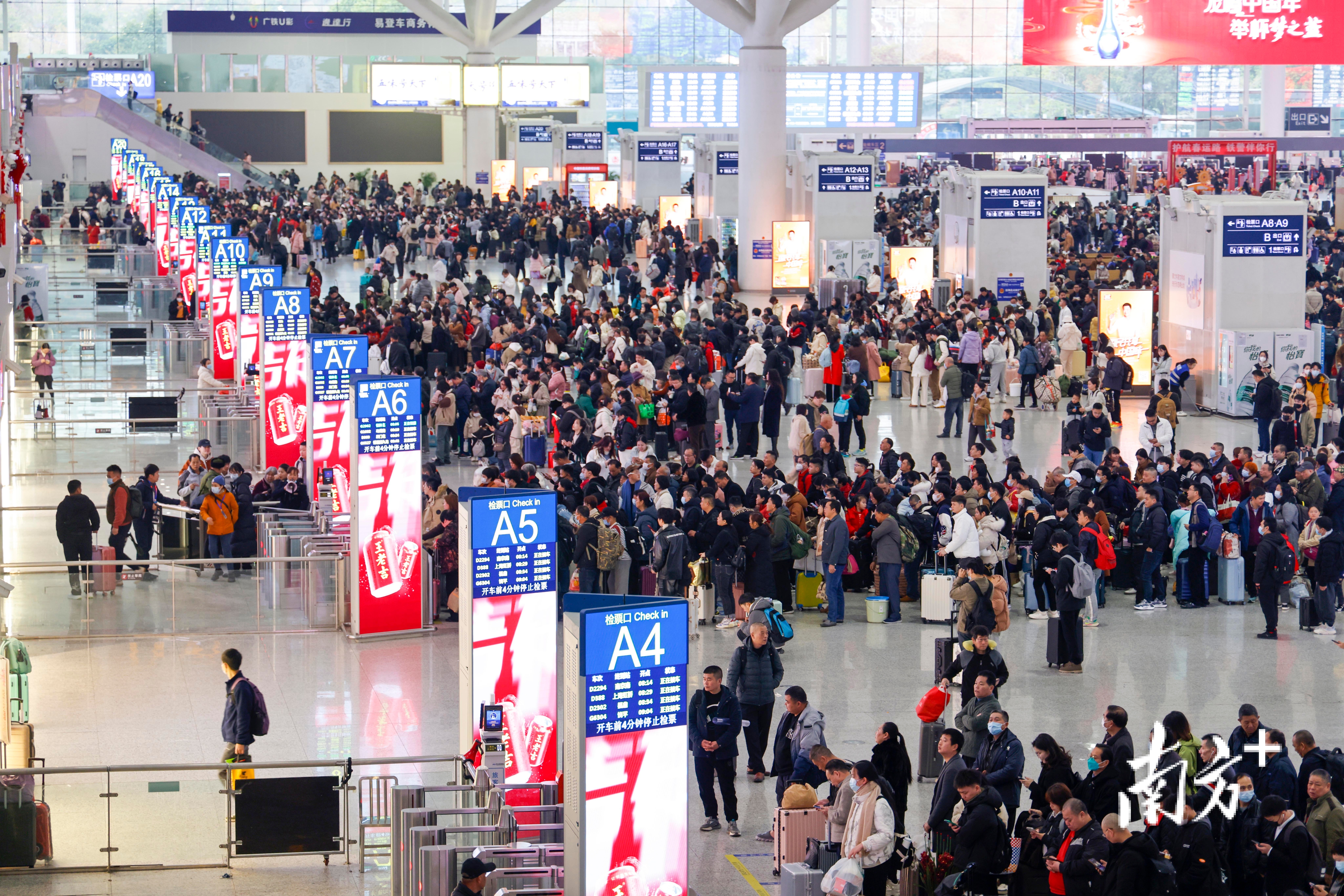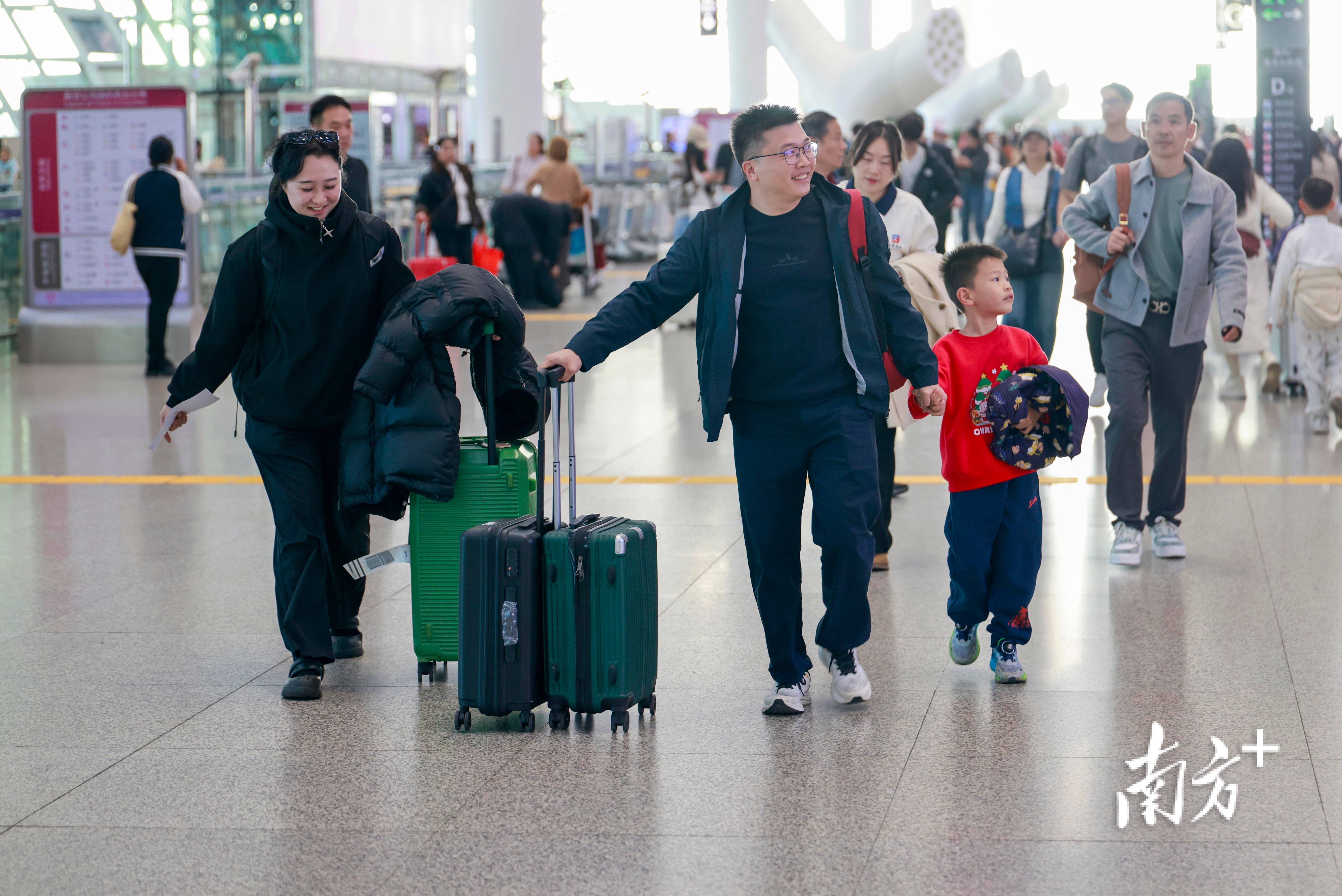 2026年春运,穿着厚厚冬装的旅客,拿着行李带着孩子,更加从容。南方日报记者 鲁力 摄