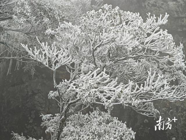 受冷空气影响,我省粤北地区多地出现冰冻现象。1月22日,河源市和平县城东约20公里的仙女灵石景区山上出现雾凇现象,寒风中雾气飘飘,恍如梦境。多图直击>>