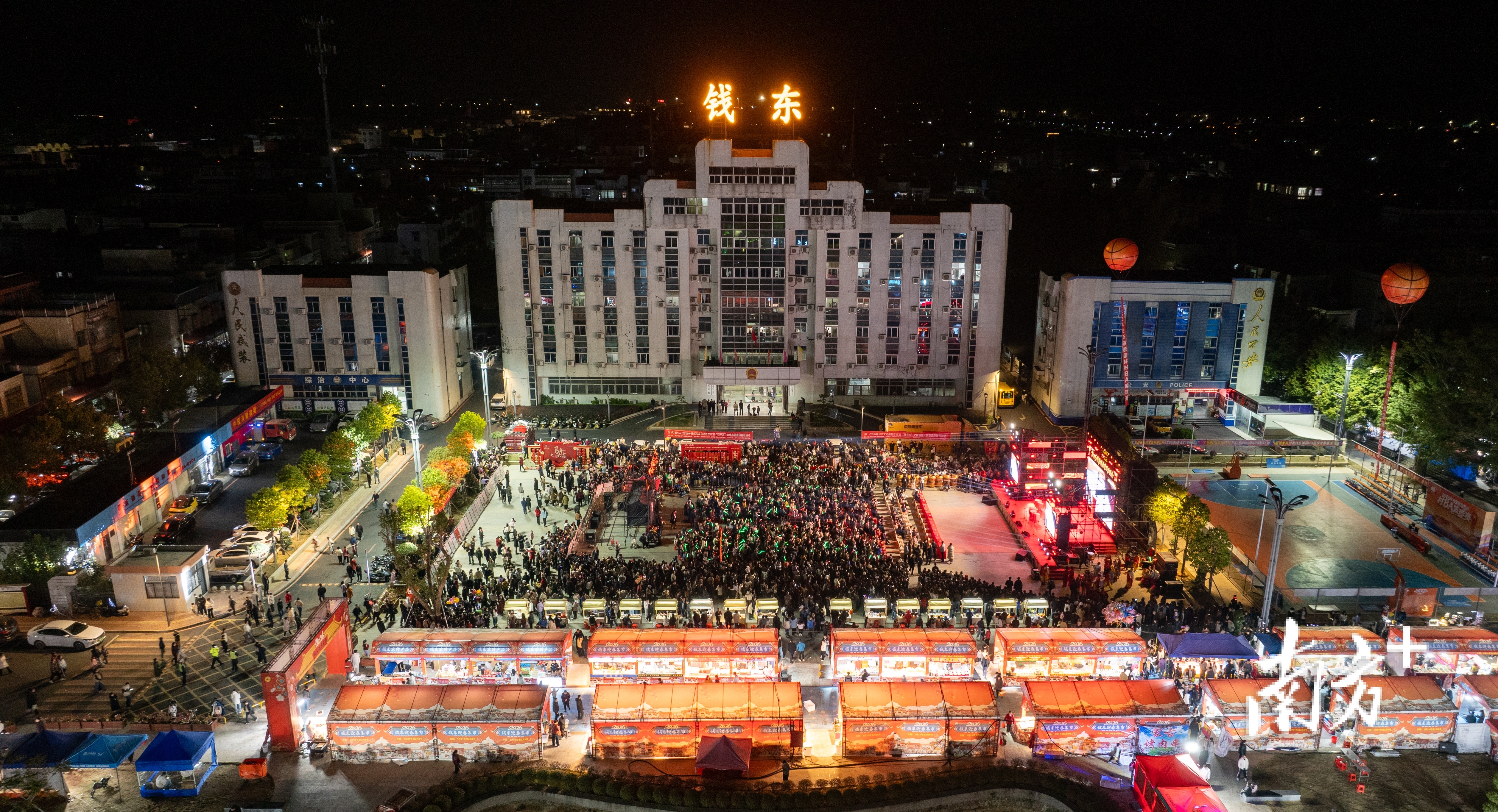 这里是2026年潮州市“文化进基层 赋能‘百千万’”文艺演出暨钱东镇马年春晚的现场。与往年不同,这场全镇的年度盛会首次搬进了政府大院,与迎春集市、乡村篮球赛同步举行。一年前,这片热闹的广场还被围墙隔开,是一片静谧的办公区。如今,封闭的机关大院变成百姓的“共享客厅”,不仅引来了人气,也带动了周边的消费。