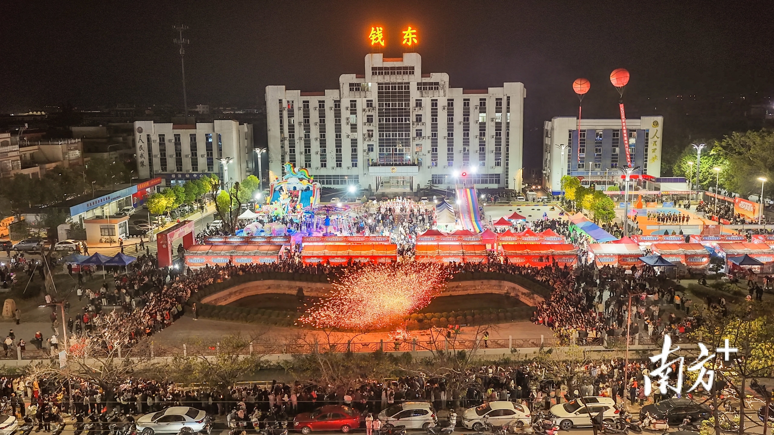 迎春集市期间的非遗打铁花表演,吸引众多群众观看。南方拍客林铄供图