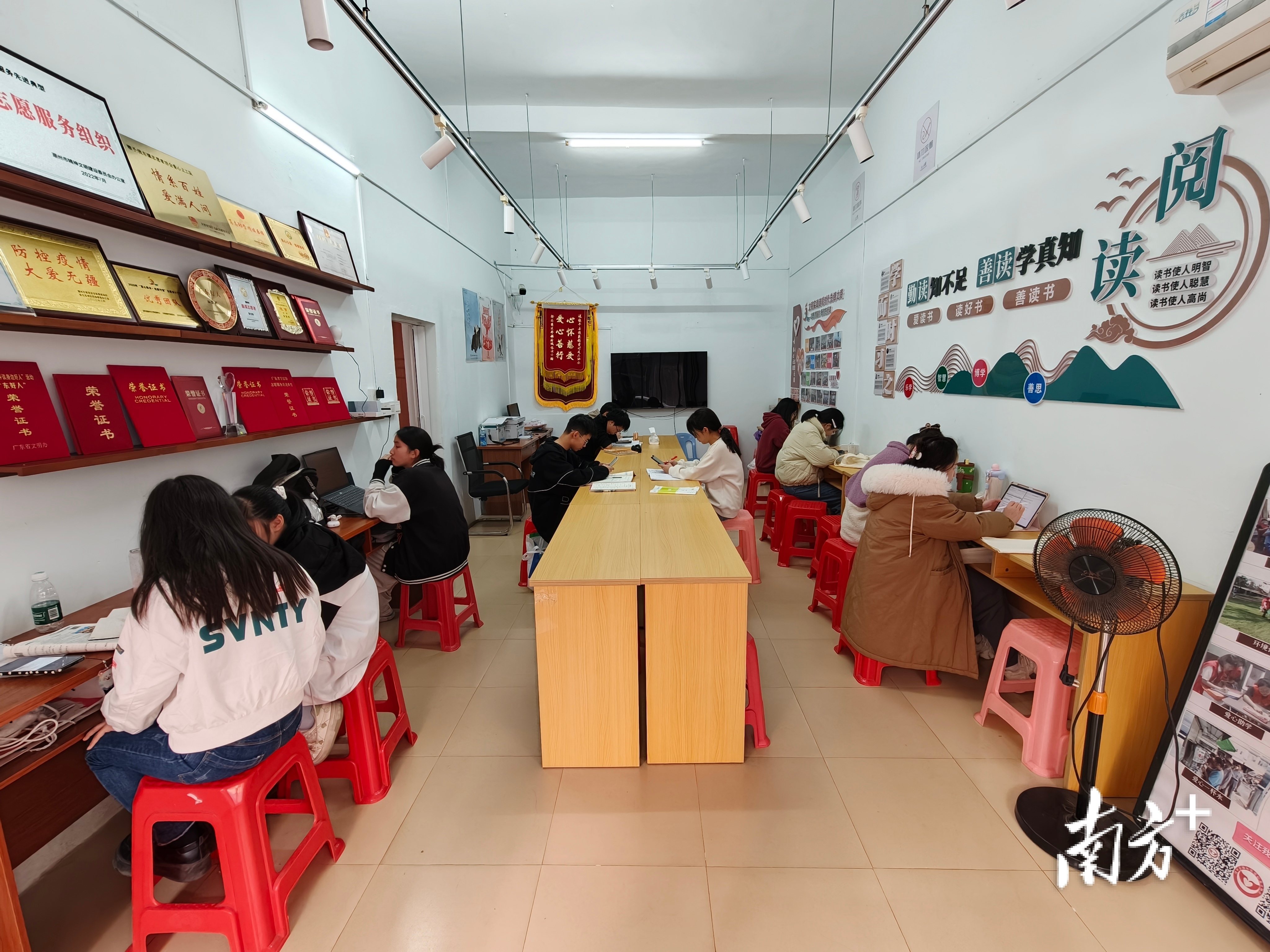 与此同时,周边的闲置空间也被一一激活。镇政府投资装修的“星火书屋”明亮温馨,每天吸引许多孩子前来阅读学习。平日里,高年级的小志愿者在此提供“传帮带”公益辅导,让书香悄然弥漫。