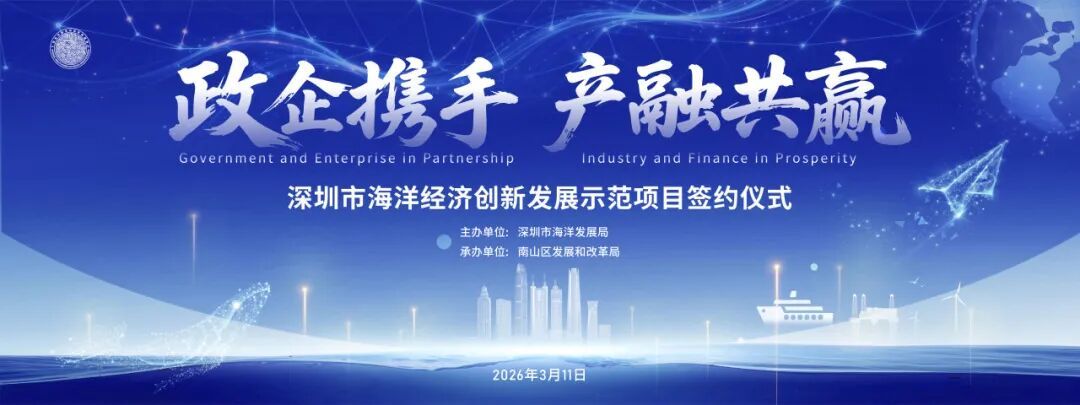 3月11日,深圳市海洋产业产融对接大会暨海洋经济创新发展示范项目签约仪式在深圳湾科技生态园隆重举行。本次大会是深圳市海洋发展局“走进深蓝”系列的首场活动,也是深圳市2026年以来首场聚焦海洋领域的重大项目签约活动。