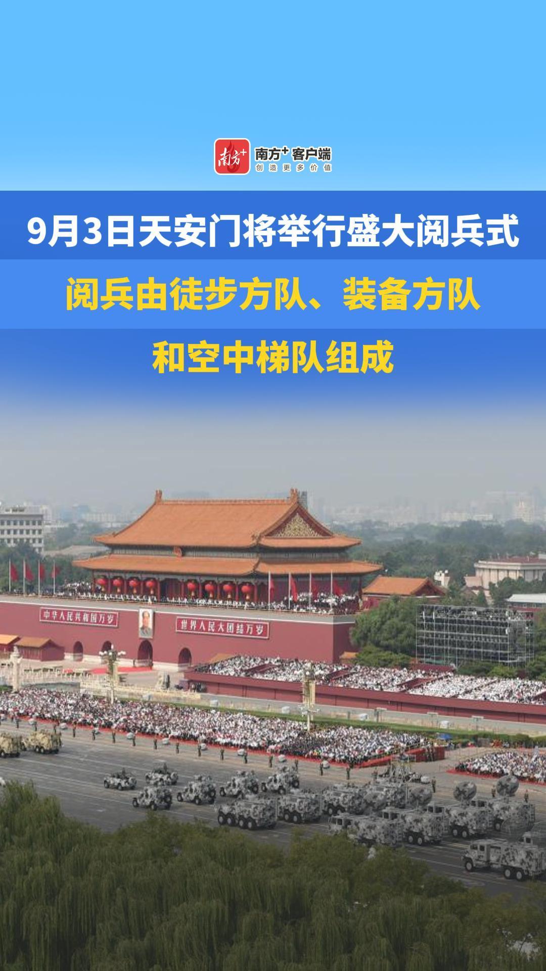 9月3日天安门将举行盛大阅兵式,阅兵由徒步方队、装备方队和空中梯队组成