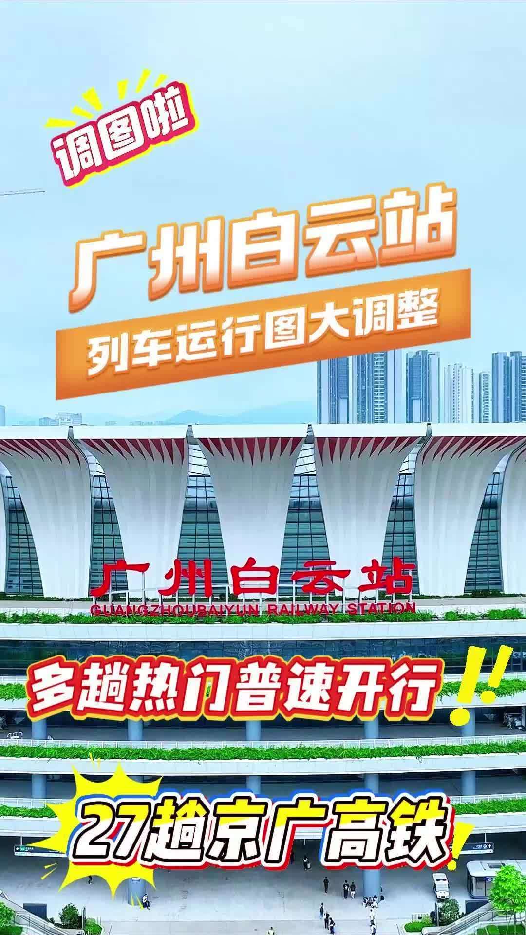 广州站7月1日调图后,普速列车基本迁至白云站始发,仅保留3趟(至徐州、鹰潭)。同时加密广深城际,每日开行51趟(6:25-21:48),方便通勤。并新增21趟甬广高铁动车,覆盖梅州、汕头、揭阳等地,促进省内旅游。