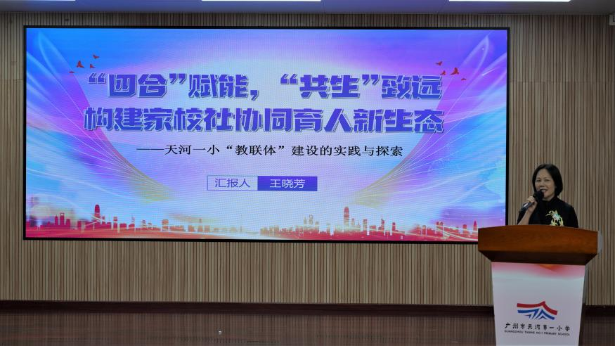 活动上,天河一小校长王晓芳结合近年来的思考与实践,介绍了学校“教联体”建设的探索路径与阶段成果。她表示,学校构建了“资源互通—课程共研—家校联动—成效反哺”的体系,通过同心同向、共建共享,为孩子的健康成长护航。