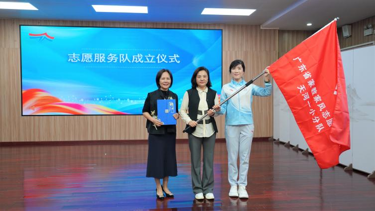 广东省家教家风志愿服务队天河第一小学分队由天河第一小学联合广东省家庭教育研究会共同成立。活动现场,广东省家教家风志愿服务队队长祁丽珠为天河一小校长王晓芳颁发志愿服务队副队长聘书,并举行天河第一小学分队授旗仪式。