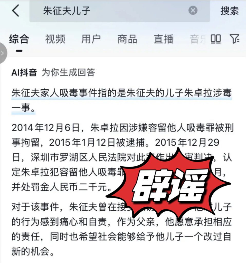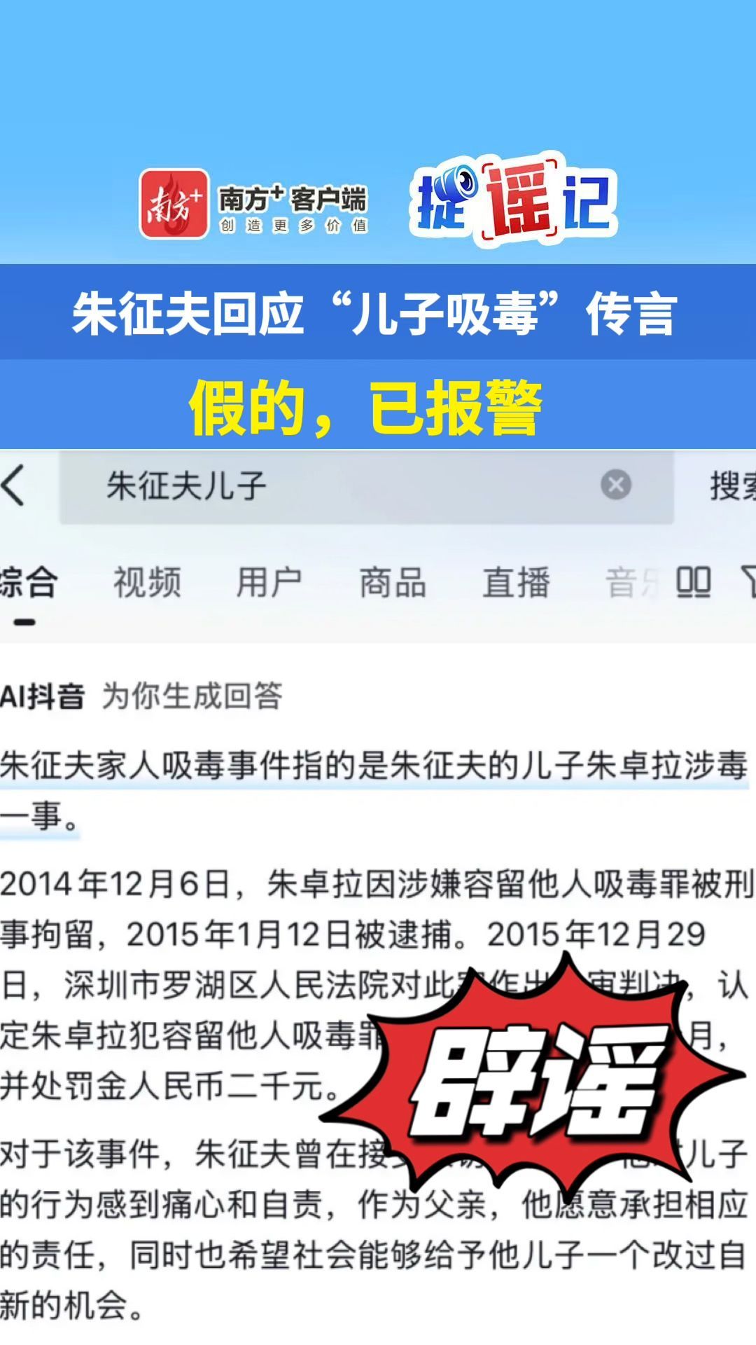 朱征夫回应“儿子吸毒”传言:假的,已报警