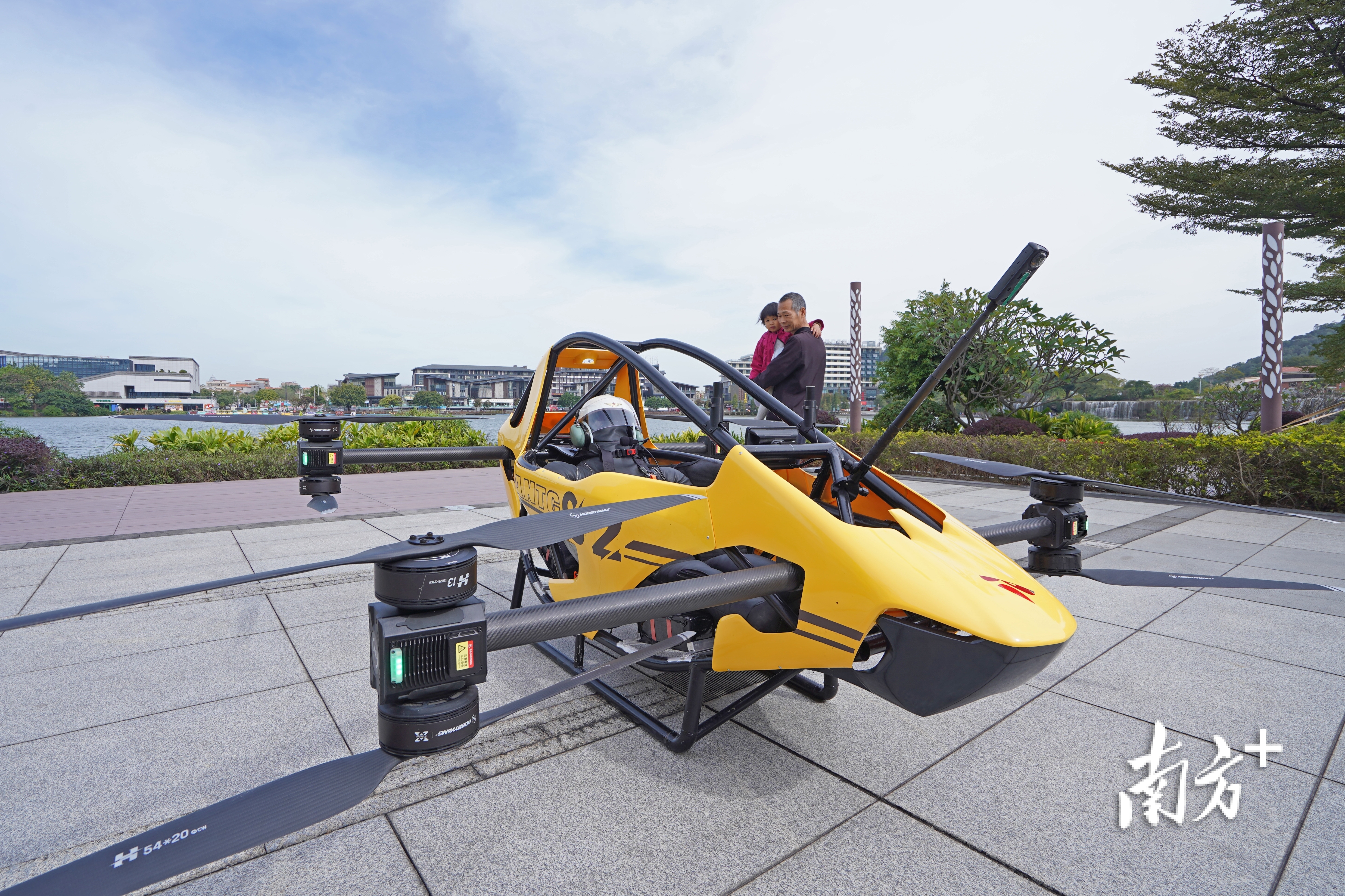安特狗PVTOL直升机、攀业氢能两轮车、萝卜快跑自动驾驶出租车、景区租赁无人机等所在的低空经济展区同样吸睛。“我们这种类似充电宝的扫码租赁机柜,已经在南海多个景点部署,市民游客可以体验操控和个人vlog合成服务,非常受欢迎。”南海城建集团属下数投公司现场负责人一边介绍该公司的无人机租赁业务,一边引导观众现场体验。