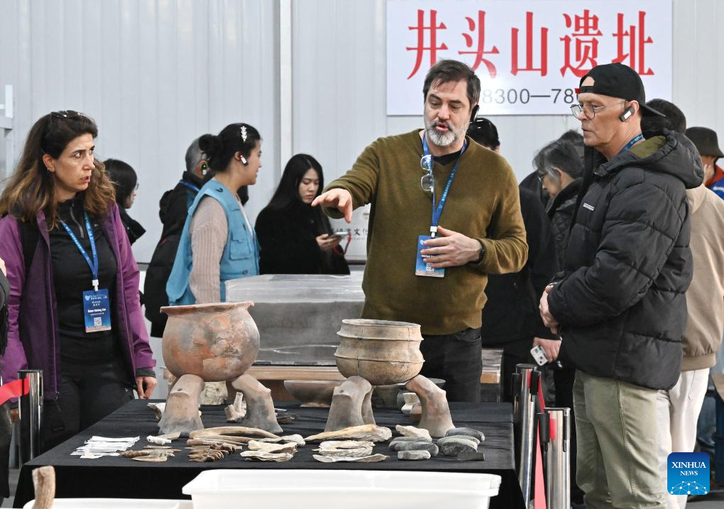 Experts and scholars attending the sixth Shanghai Archaeology Forum (SAF2025) visit the cultural relics storage room of Jingtoushan Site in Yuyao City of Ningbo, east China's Zhejiang Province, on Dec. 15, 2025. Jointly hosted by the Chinese Academy of Social Sciences, Shanghai Municipal People's Government and the National Cultural Heritage Administration of China, the SAF2025 themed on "Technology, Society and Archaeology" has attracted nearly 300 experts and scholars from over 40 countries and regions around the world to attend. (Xinhua/Li He)
