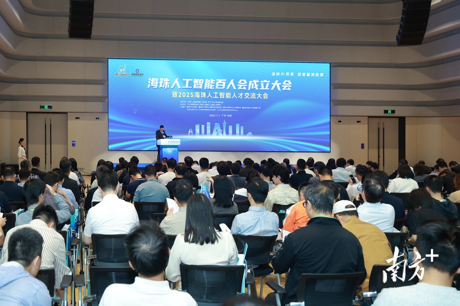 11月1日,海珠人工智能百人会成立大会暨2025海珠人工智能人才交流大会在广州琶洲人工智能与数字经济试验区举行。大会举办了人工智能主题报告会,促成了一批人工智能应用项目落地签约,项目总金额约2亿元。