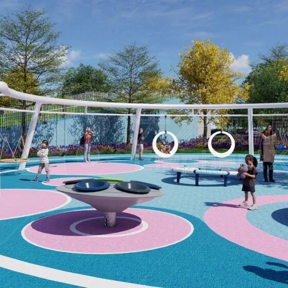 继一期专业运动天地效果图曝光后,目前项目二期亲子乐园效果图相继揭晓,预计2026年5月向市民开放。