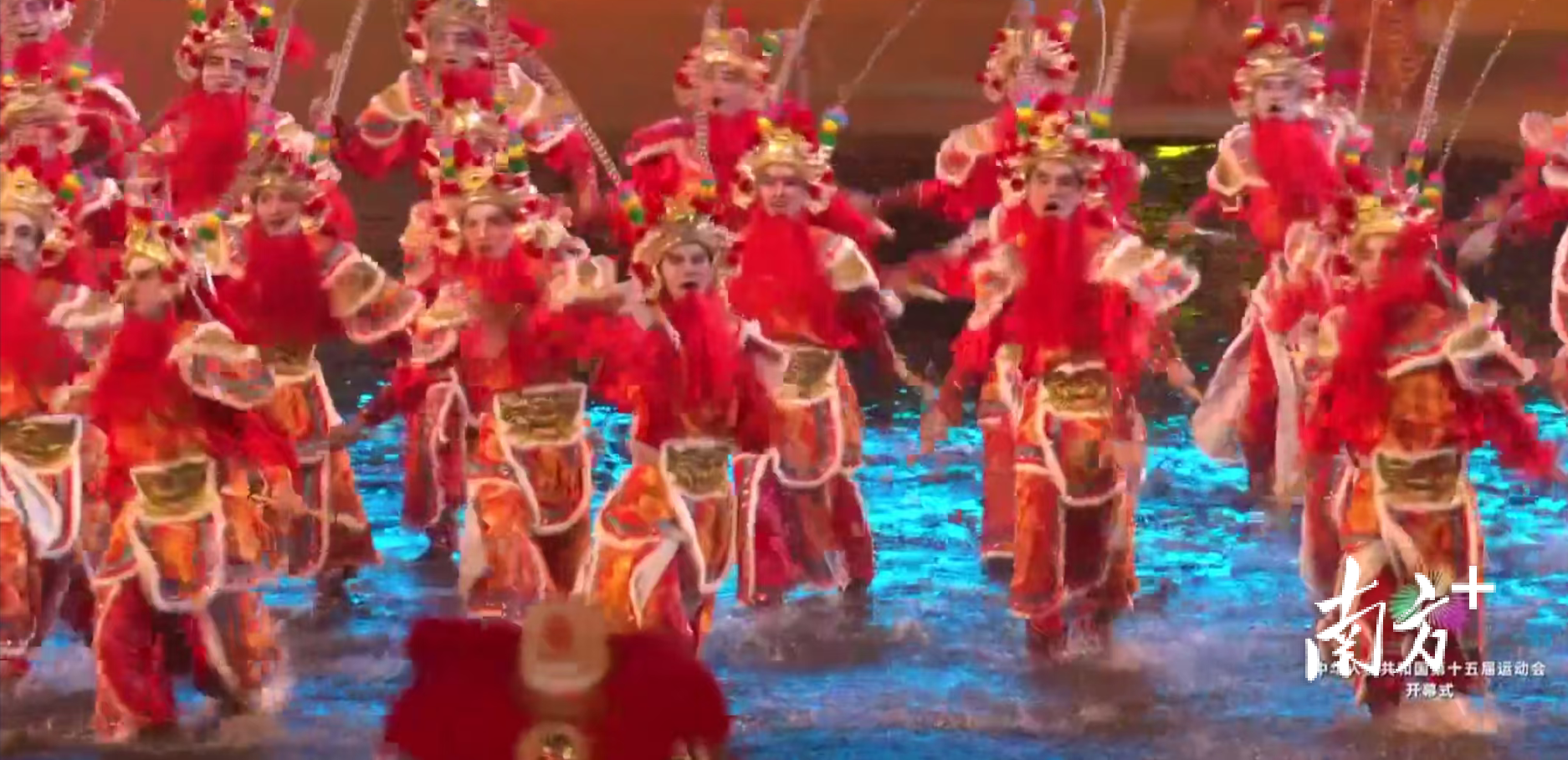 11月9日晚,以“激情全运会,活力大湾区”为主题口号的第十五届全国运动会在广州举行开幕式。来自汕头潮阳的英歌代表队震撼亮相,他们以96人的庞大队伍、统一的服饰妆容、整齐划一的动作与铿锵有力的步伐演绎非遗新活力,成为开幕式表演中一道亮丽的风景线。