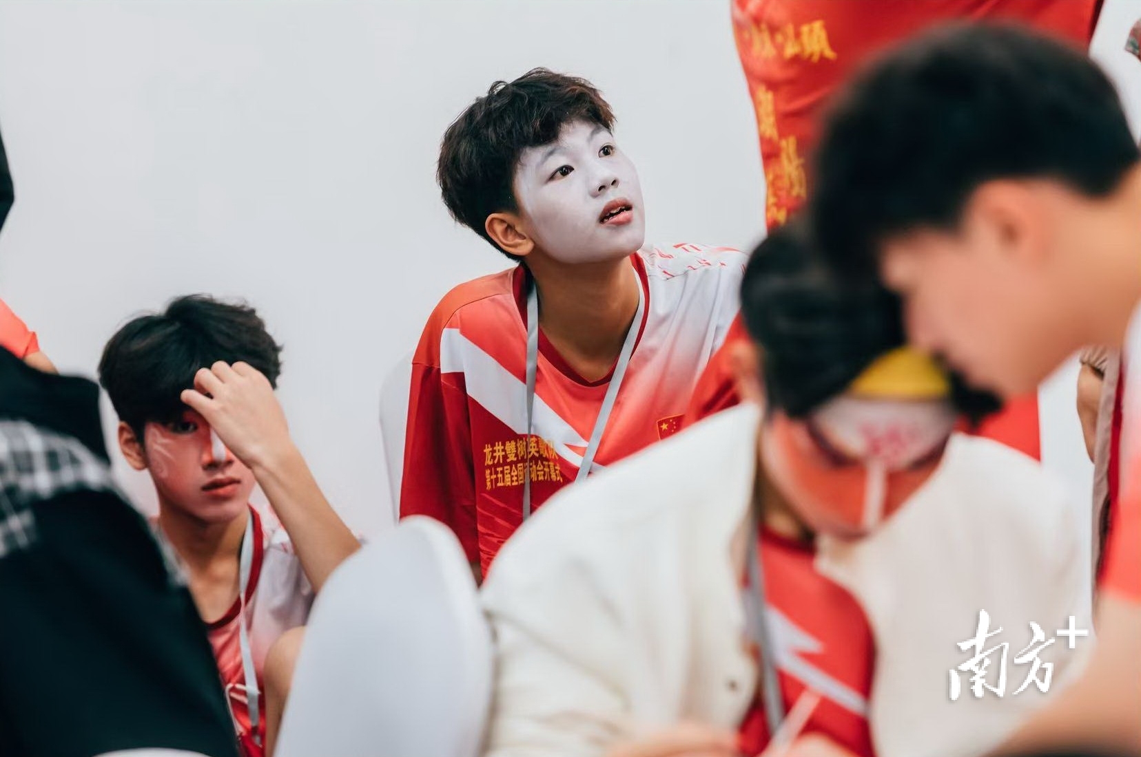 潮阳英歌代表队员化妆候场中。开幕式主创团队供图
