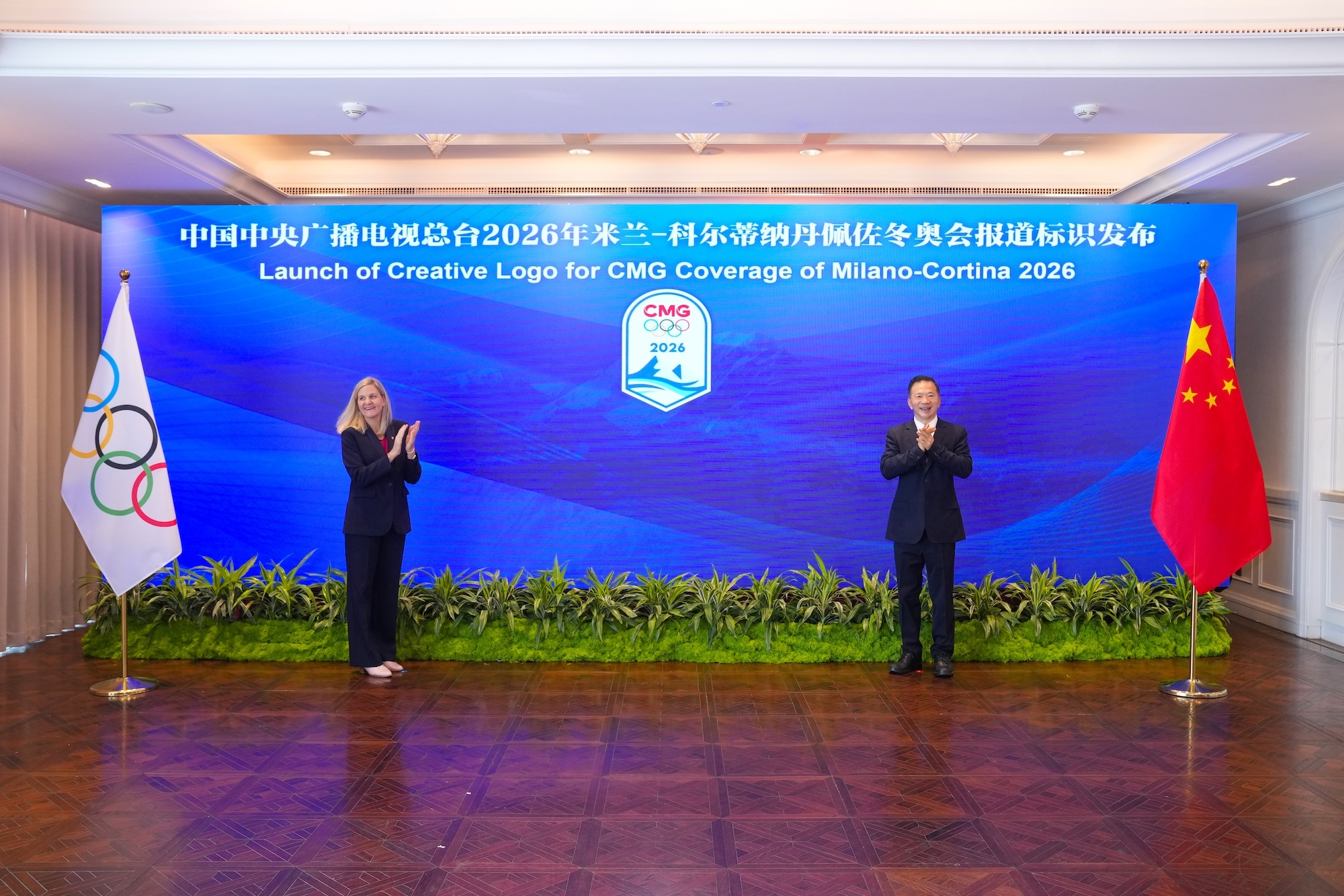 签约仪式现场,总台2026年米兰—科尔蒂纳丹佩佐冬奥会报道标识正式发布。