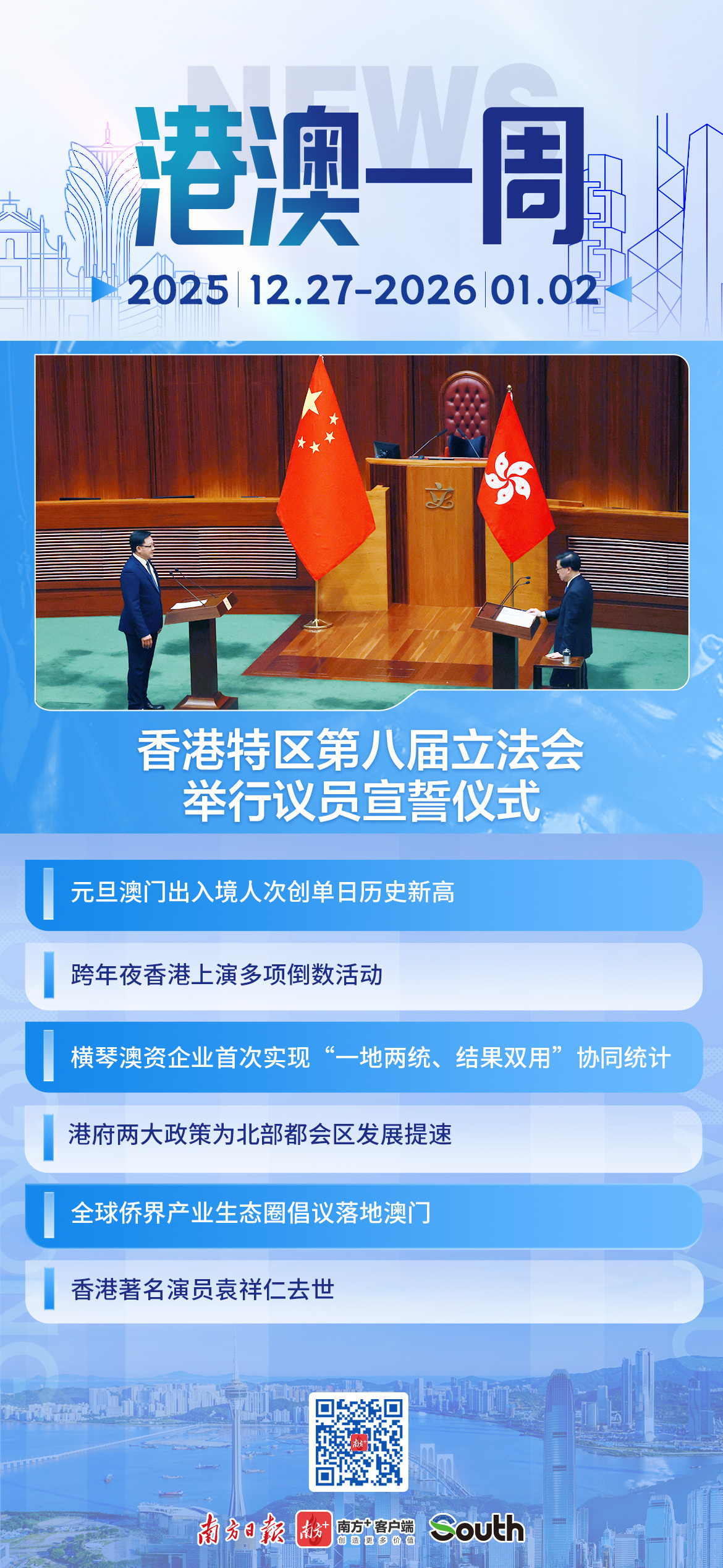 2026年1月1日上午,香港特区第八届立法会举行议员宣誓仪式。在香港特区行政长官李家超监誓下,新一届立法会议员庄严宣誓。香港特区第八届立法会由90名议员组成,任期于2026年1月1日开始,任期4年。详情>>
