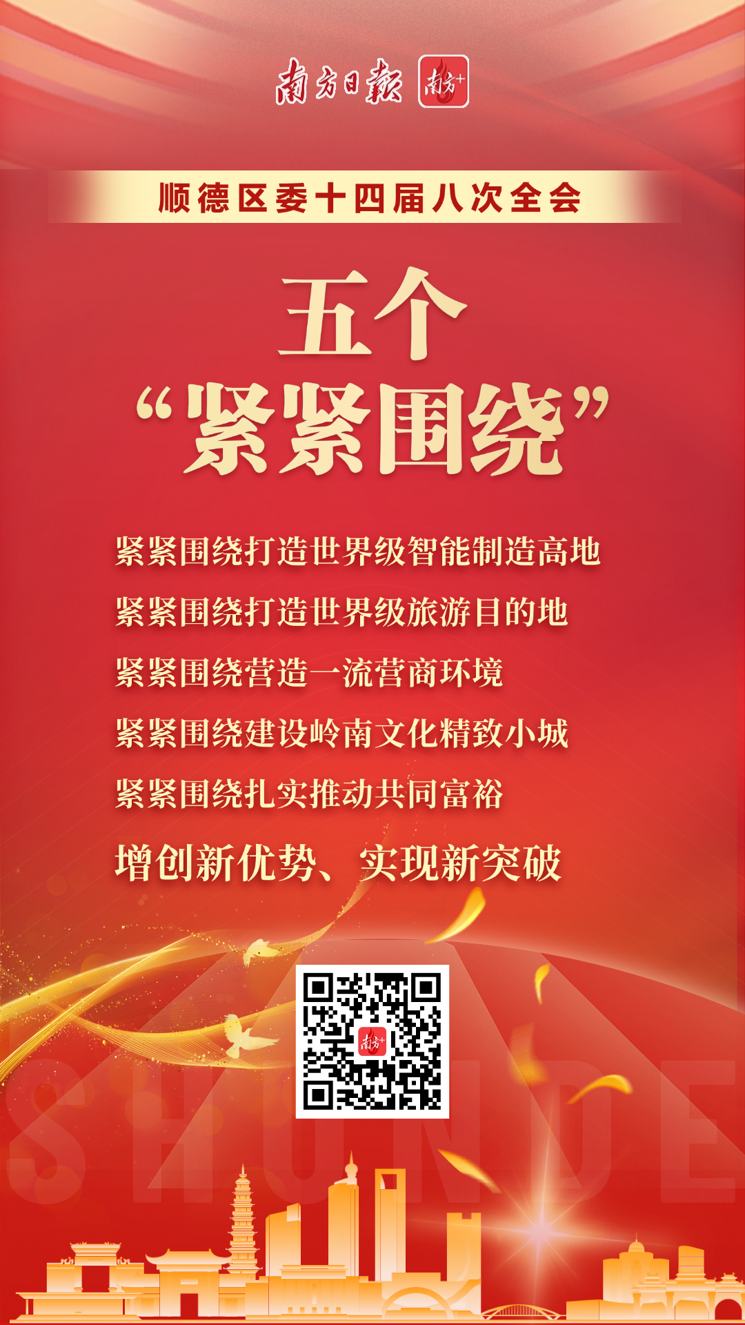 “作为全省经济大区,顺德要做到‘五个紧紧围绕’,紧紧围绕打造世界级智能制造高地、紧紧围绕打造世界级旅游目的地、紧紧围绕营造一流营商环境、紧紧围绕建设岭南文化精致小城、紧紧围绕扎实推动共同富裕,增创新优势、实现新突破,全力推动经济社会发展实现根本性变革。”