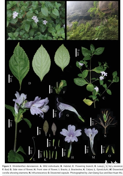 告别微小的昆虫世界,丹霞山第55个新物种——丹霞马蓝(*Strobilanthes danxiaensis*),以一抹冬日里的蓝紫色惊艳亮相。由广州市林业和园林科学研究院、中山大学、丹霞山管理委员会及云萝植物园组成的研究团队,通过形态学对比与分子系统学分析,确认这一多年生草本为未被记载的新物种,相关成果发表于国际植物分类学期刊《植物钥匙》(*PhytoKeys*)。