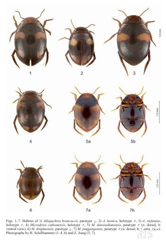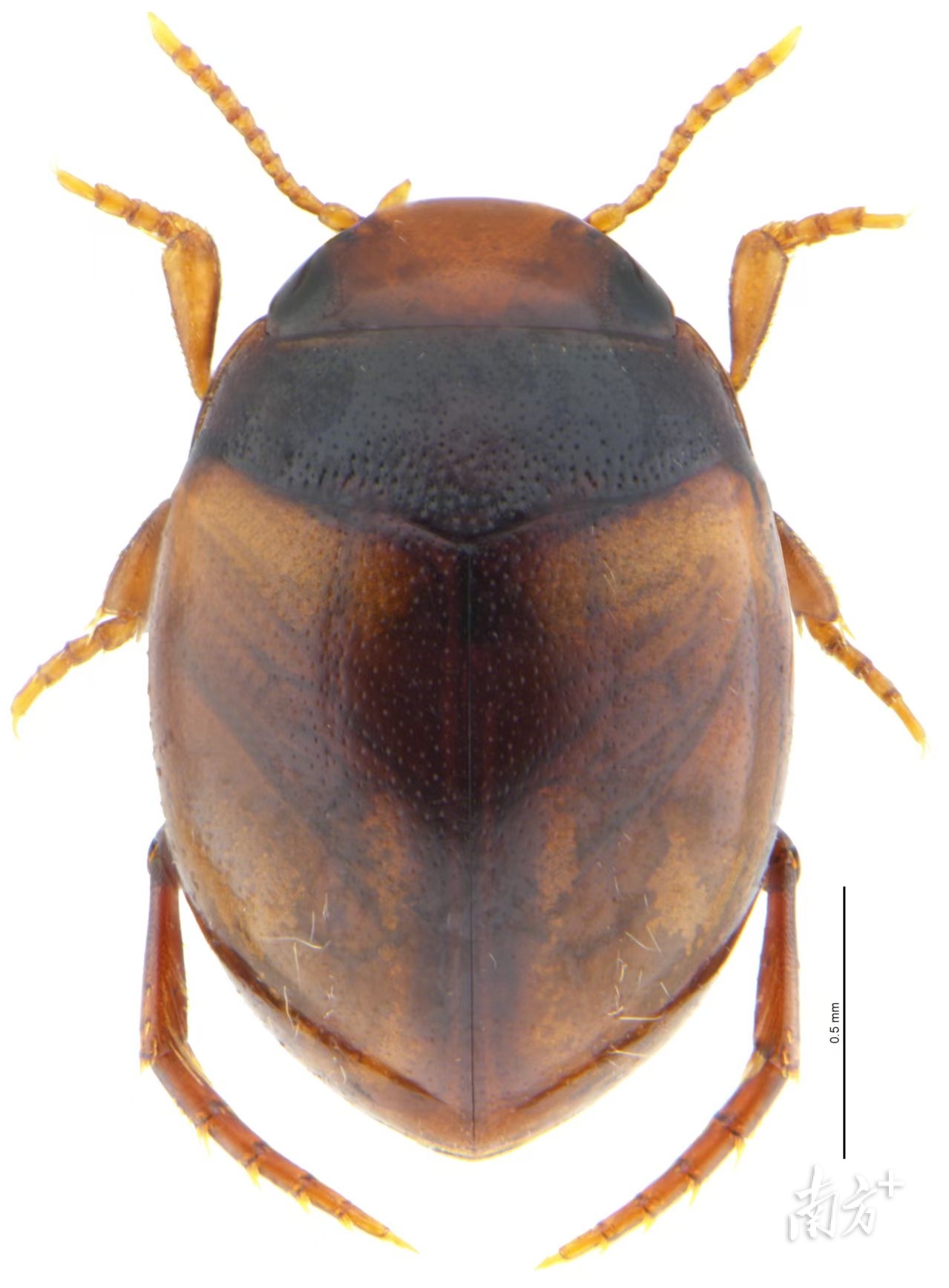 首个登场的丹霞微龙虱(*Microdytes danxiaensis*),是对科研人员观察力与耐心的极致考验。由中山大学贾凤龙教授团队联合奥地利、捷克学者共同发现的这一物种,体长仅1.7—1.8毫米——若将12只个体头尾相连,总长度才勉强覆盖一枚一元硬币的直径,是目前中国已知龙虱科昆虫中体型最小的成员。